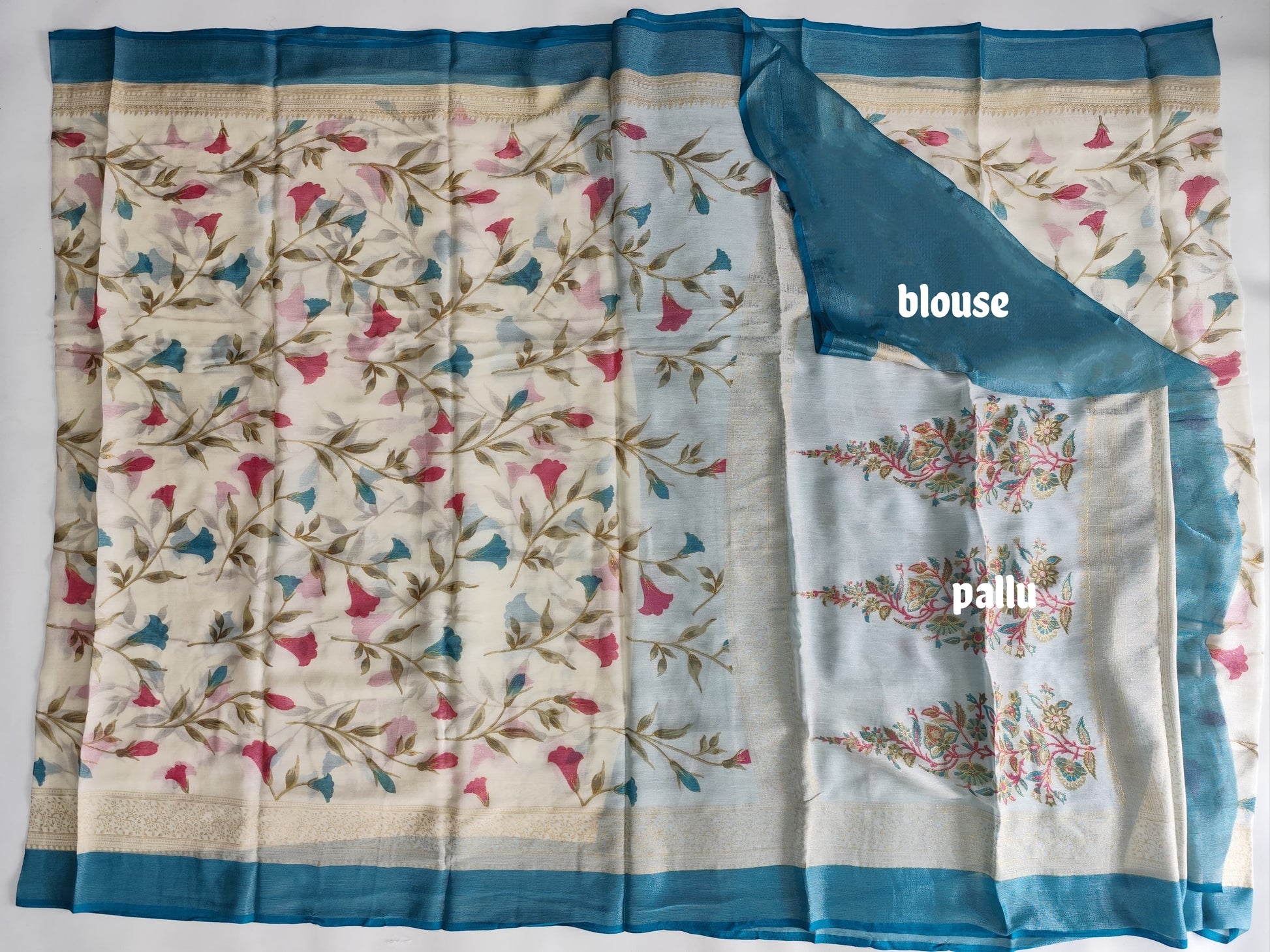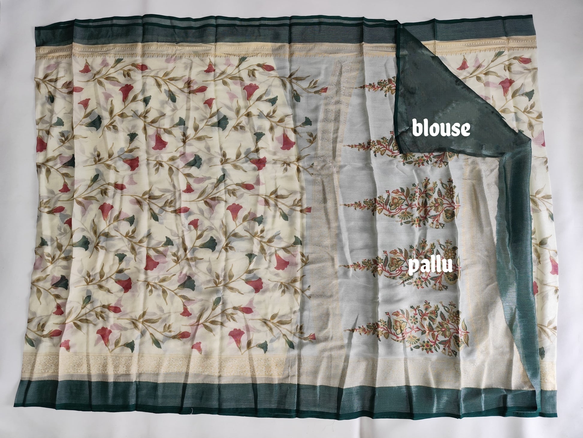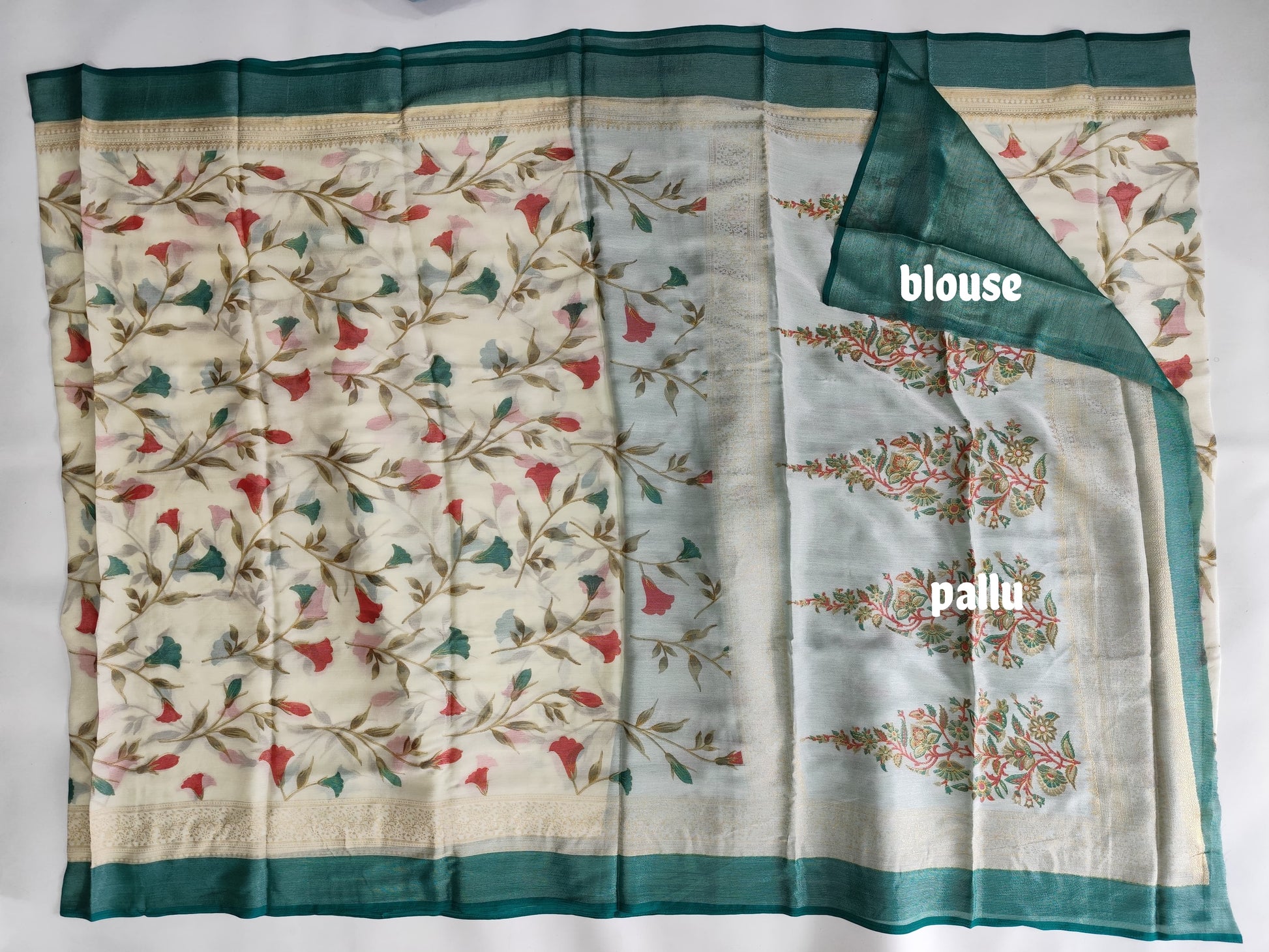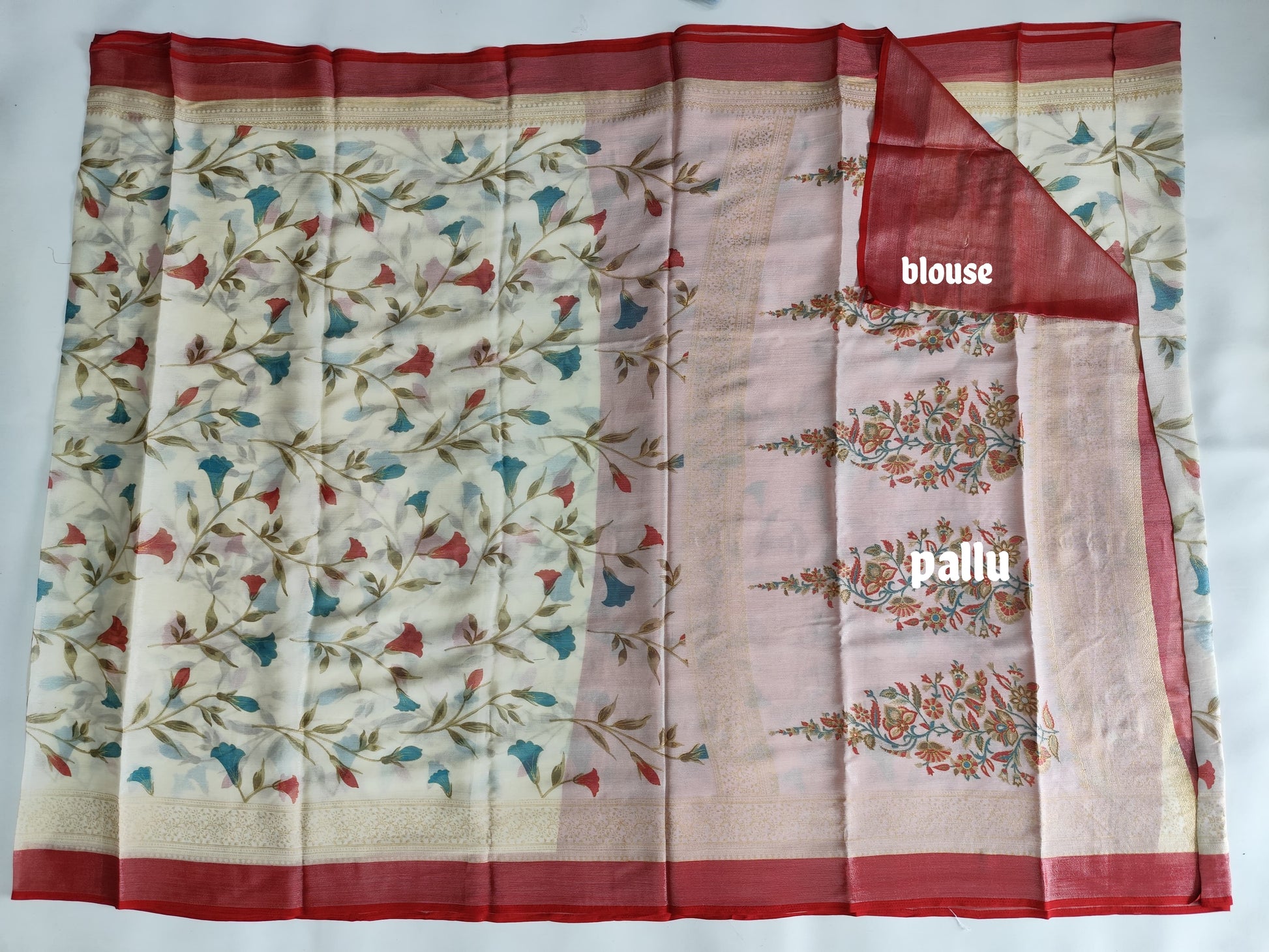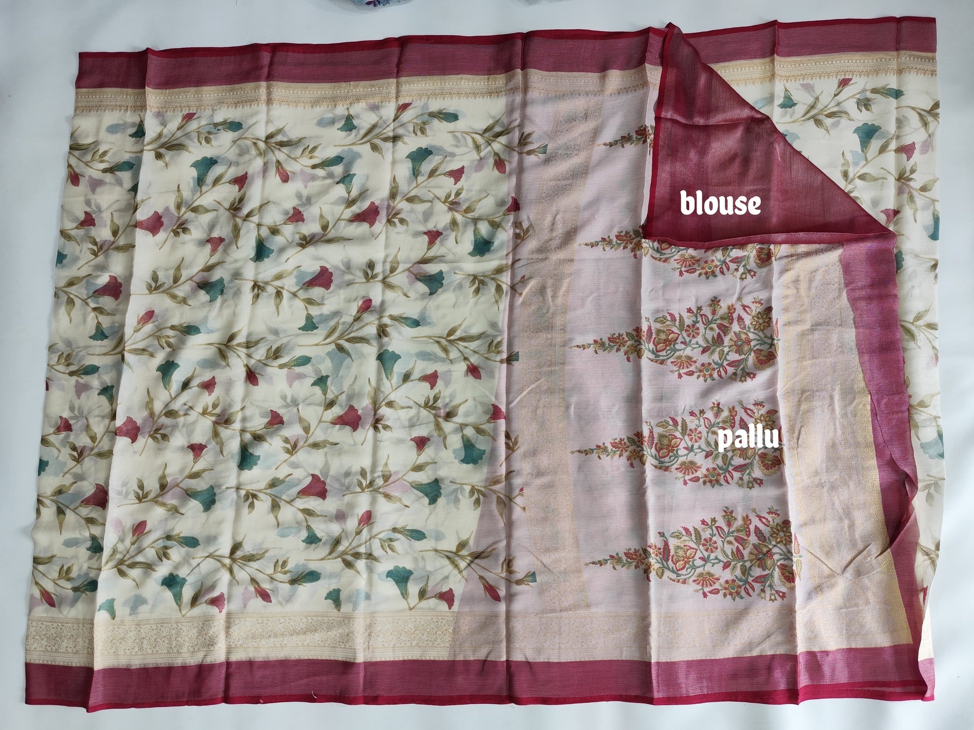 This elegant Floral Semi-Silk Saree features a stunning floral pattern with a subtle small border and comes with a stylish contrast blouse, making it ideal for office wear and daily use. Lightweight and vibrant, it offers all-day comfort with timeless ethnic charm.