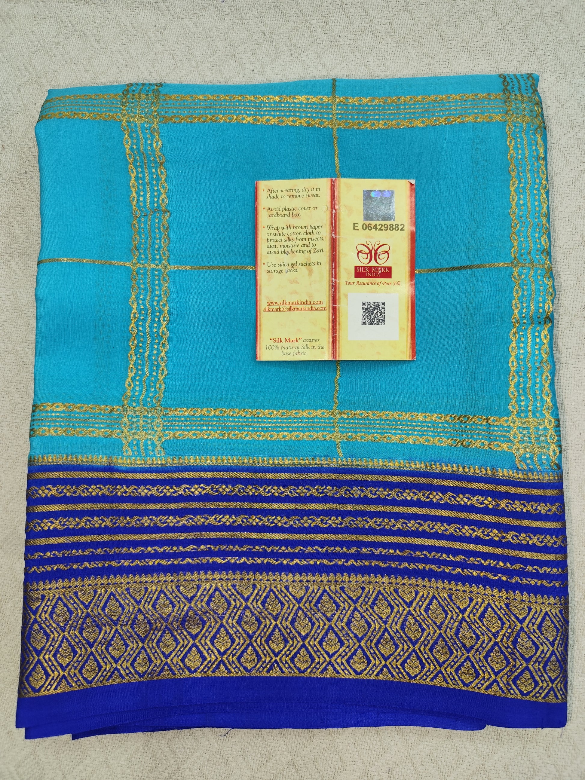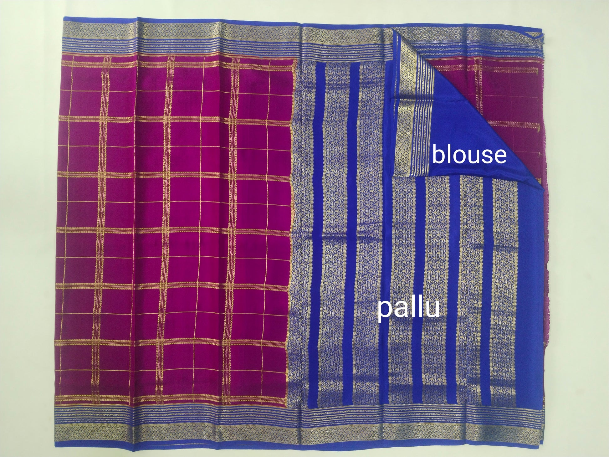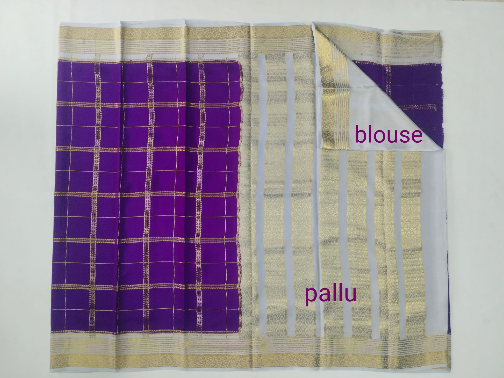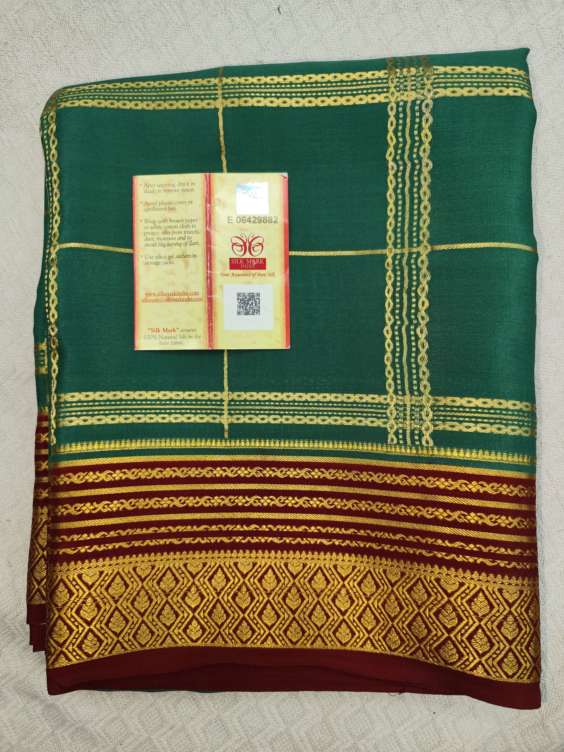 Pure Mysore Crepe Silk Saree with Rich Zari Border & Contrast Checks – Veena Silk