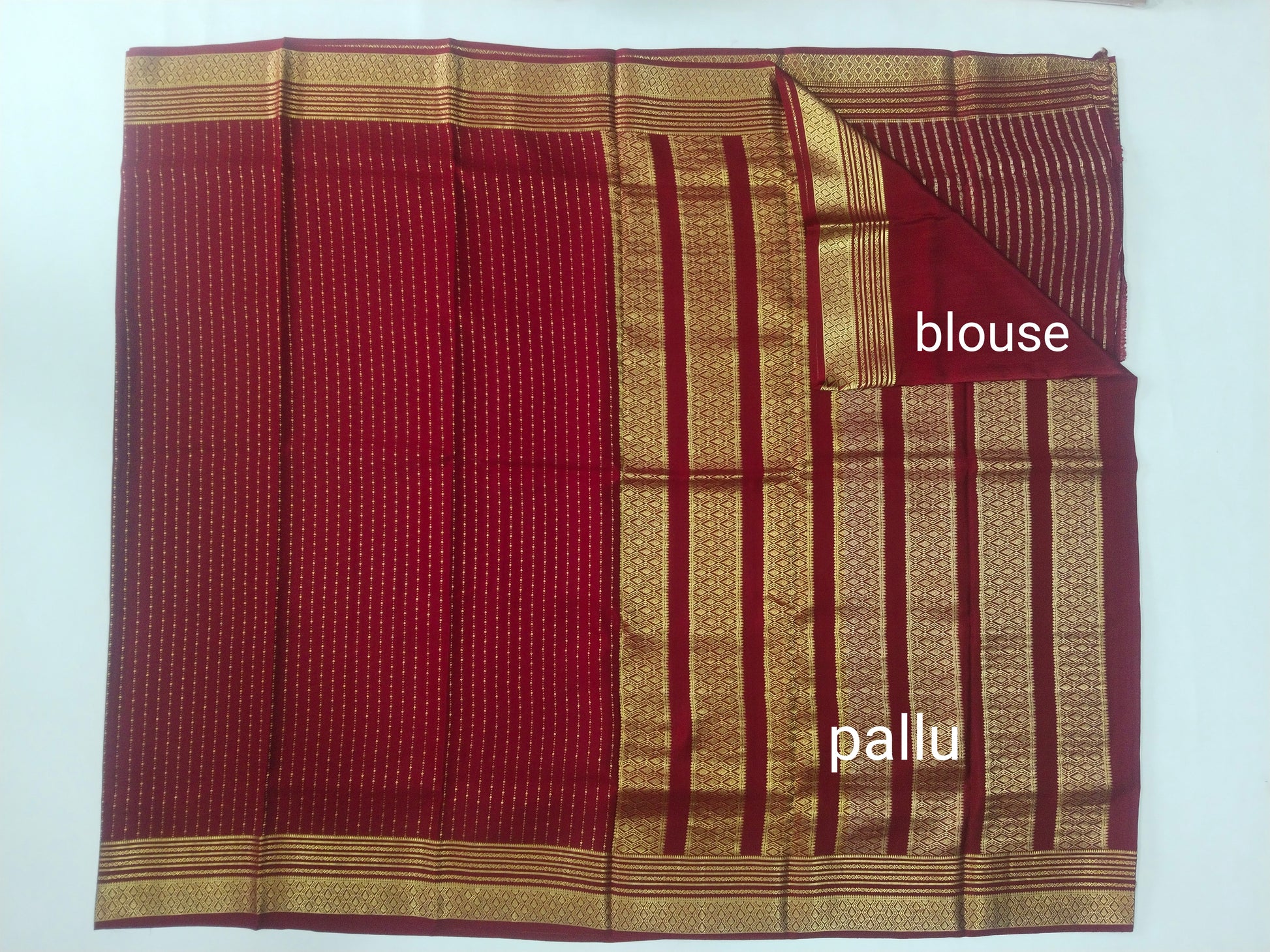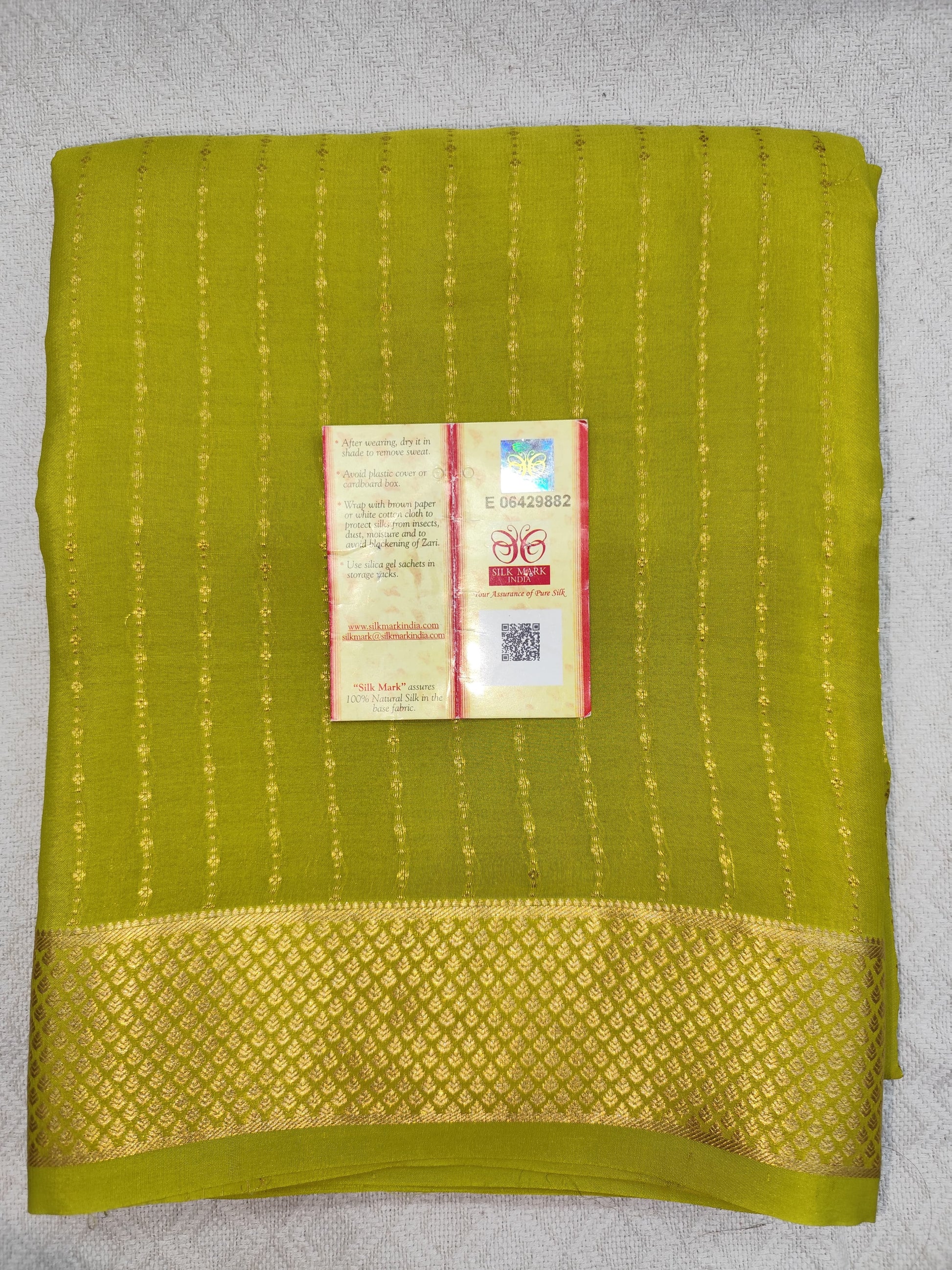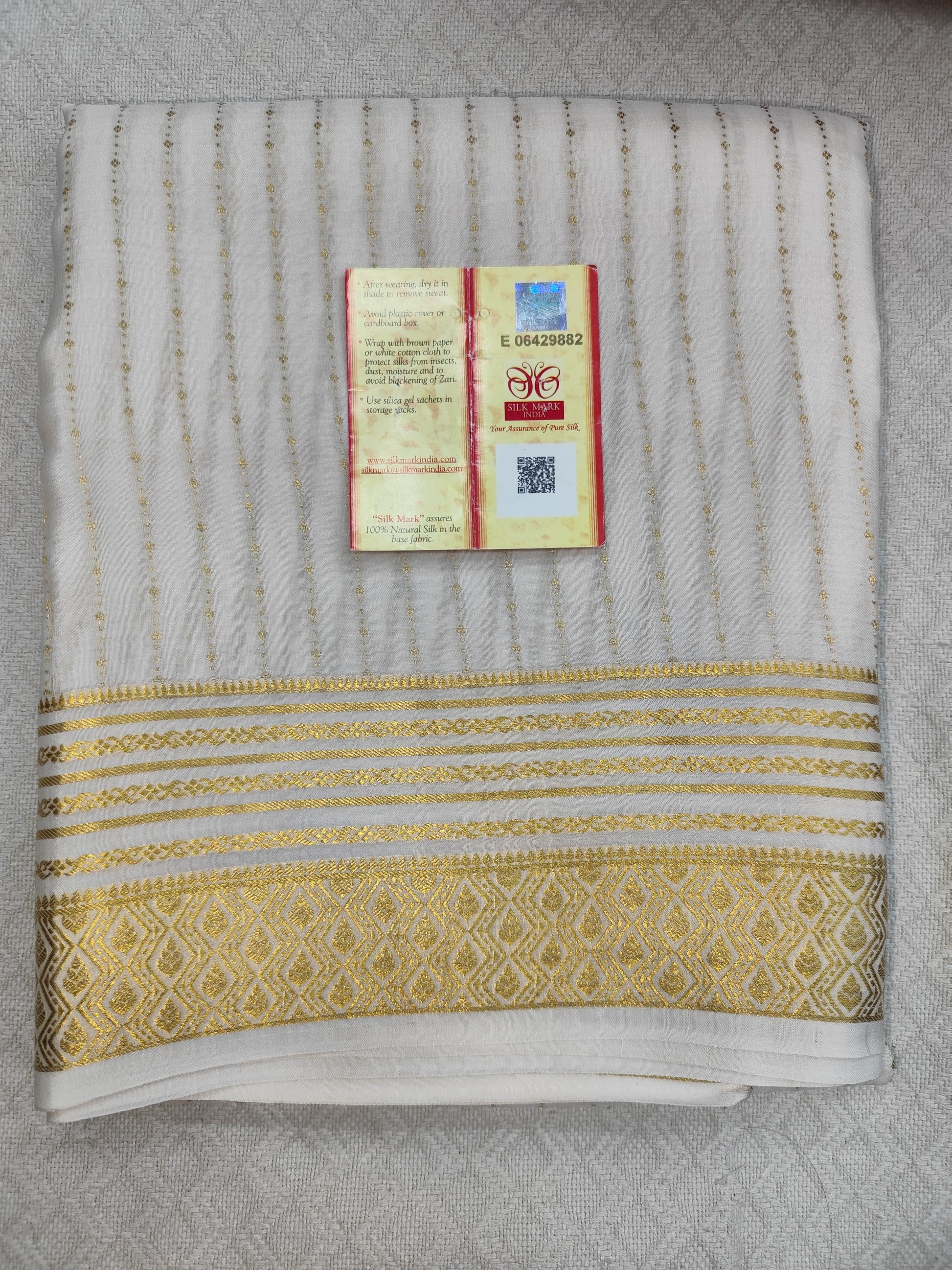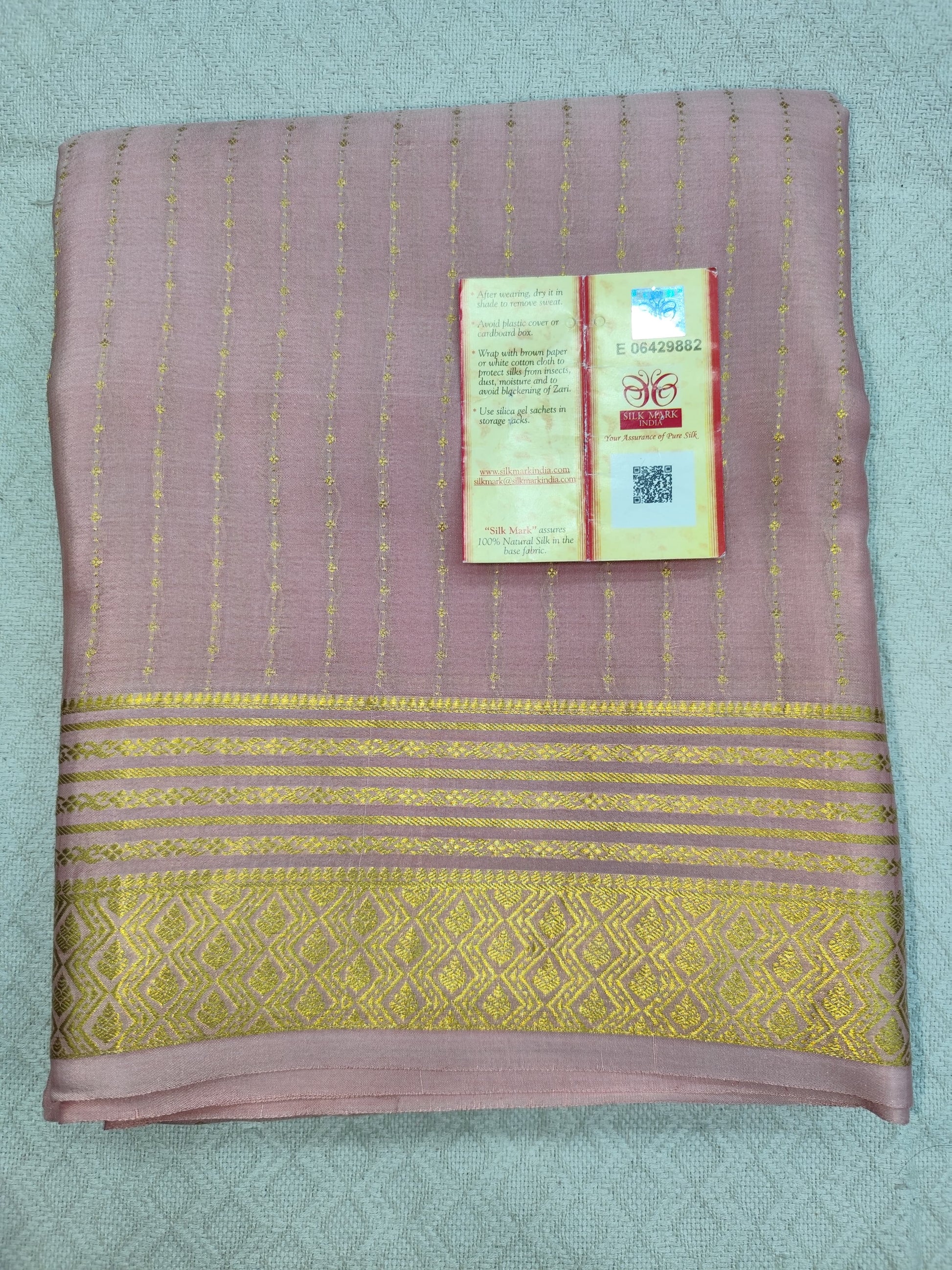 Pure Mysore Crepe Silk Saree with Golden Striped Butta & Rich Zari Border – Veena Silk