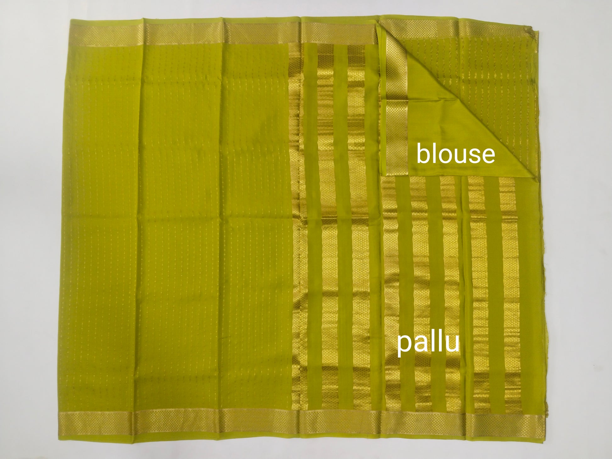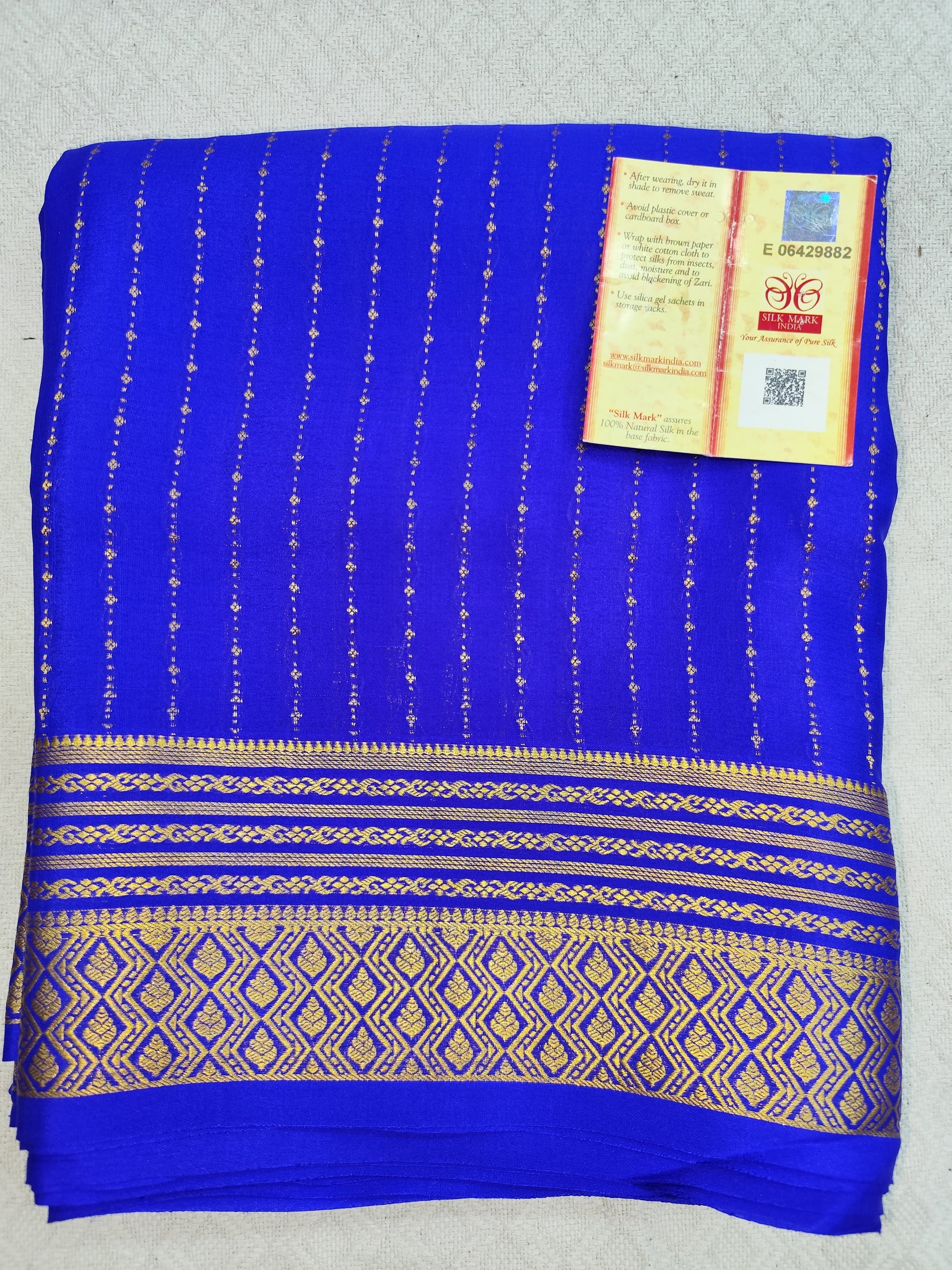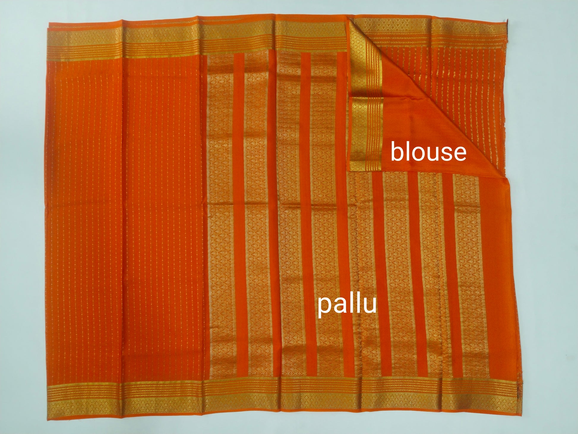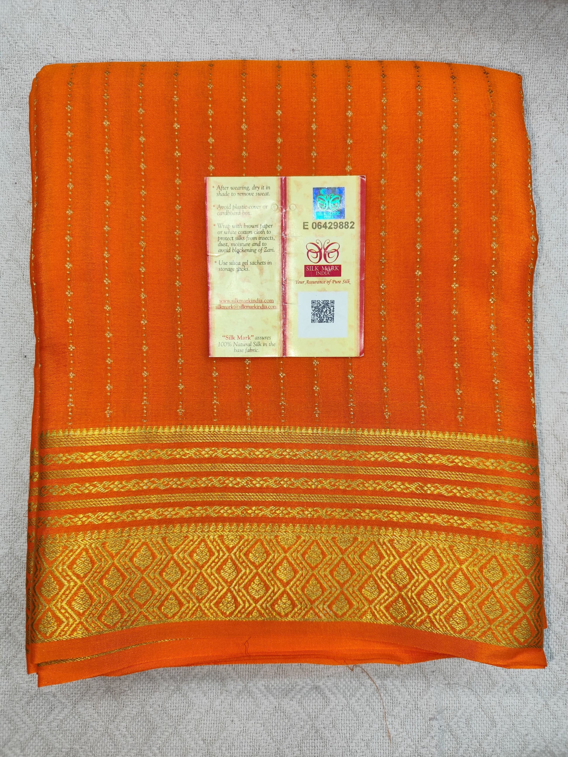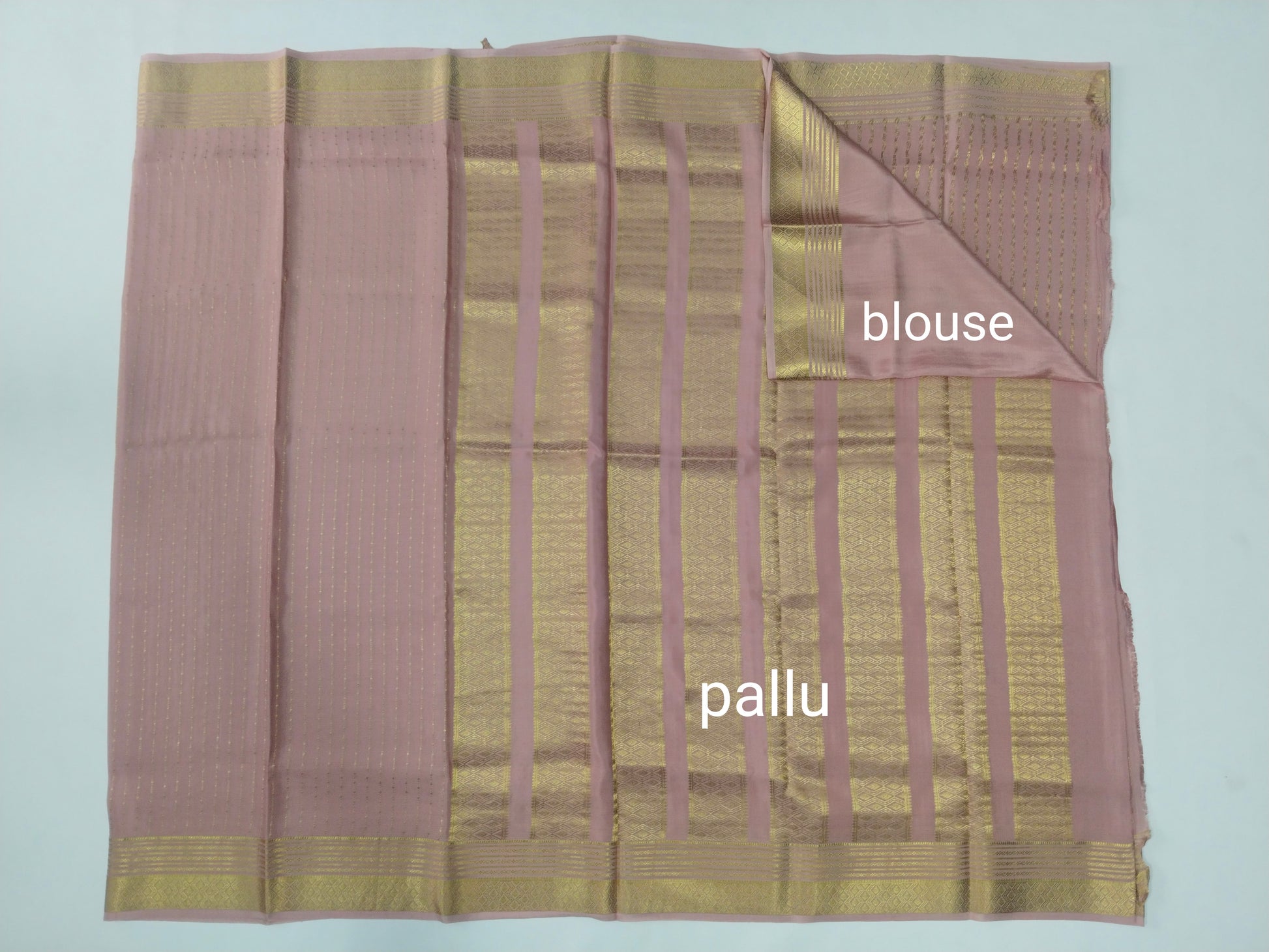 Pure Mysore Crepe Silk Saree with Golden Striped Butta & Rich Zari Border – Veena Silk