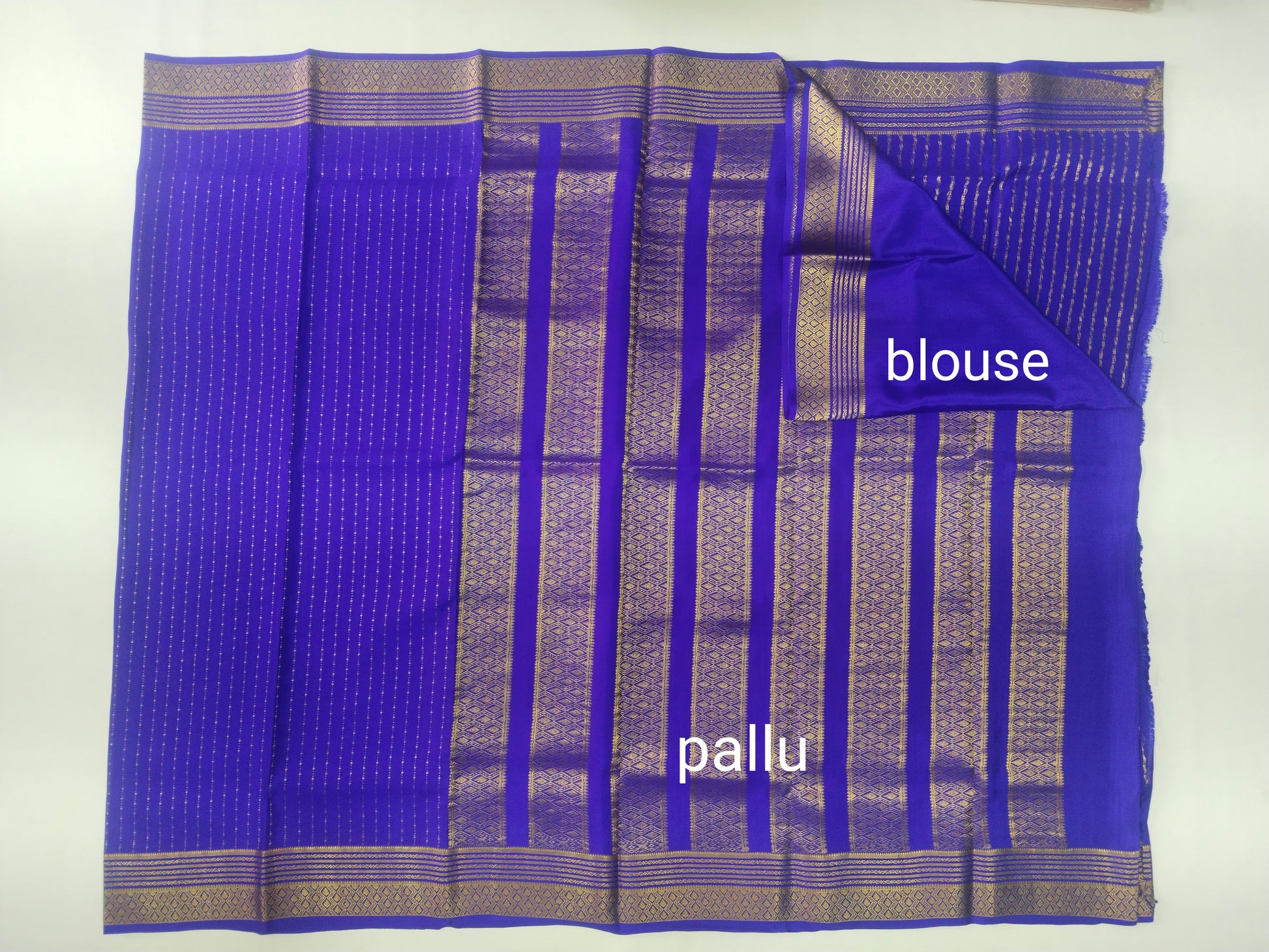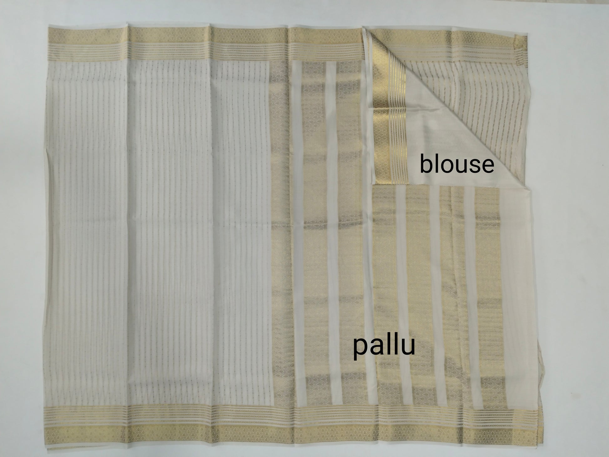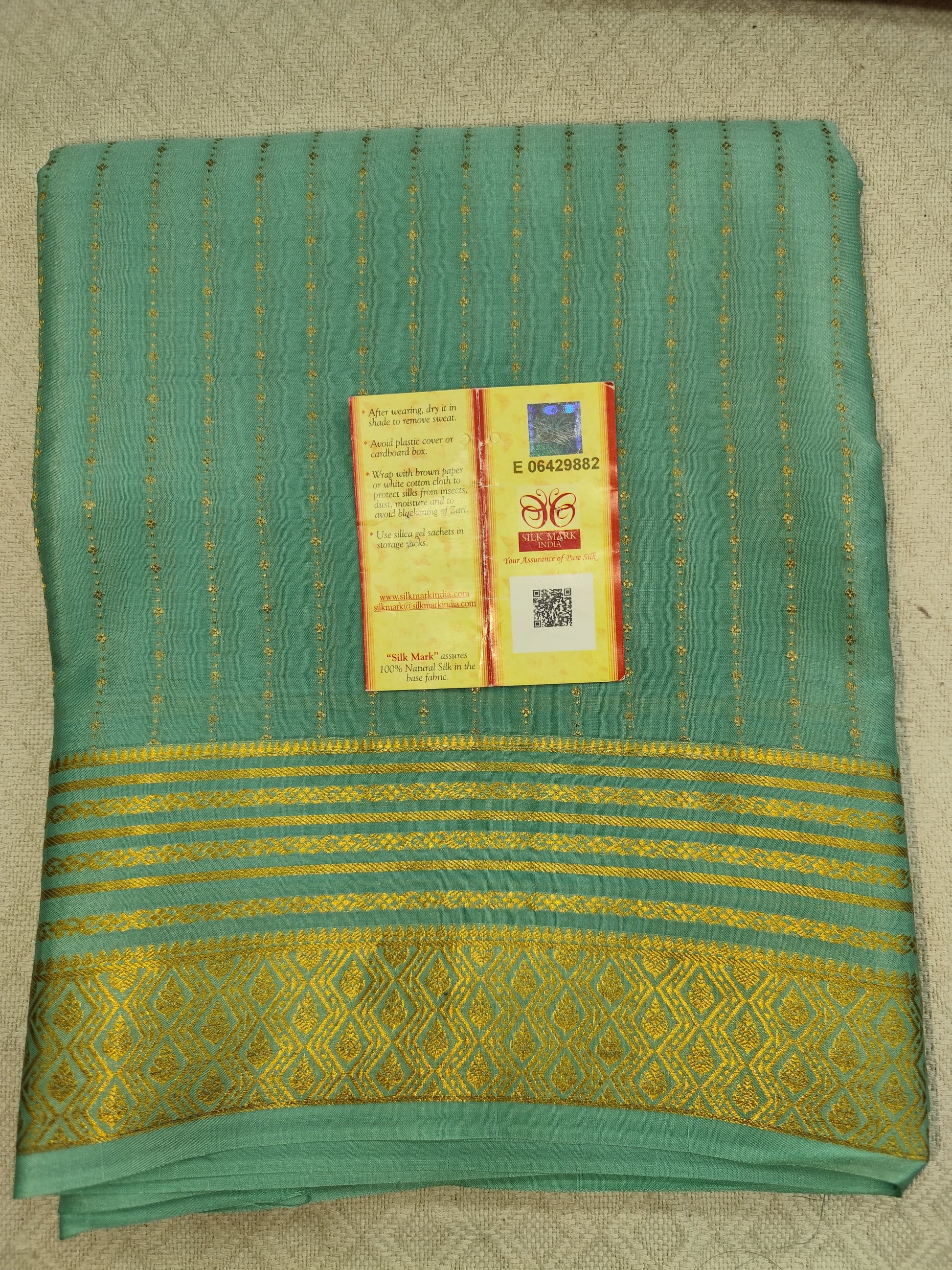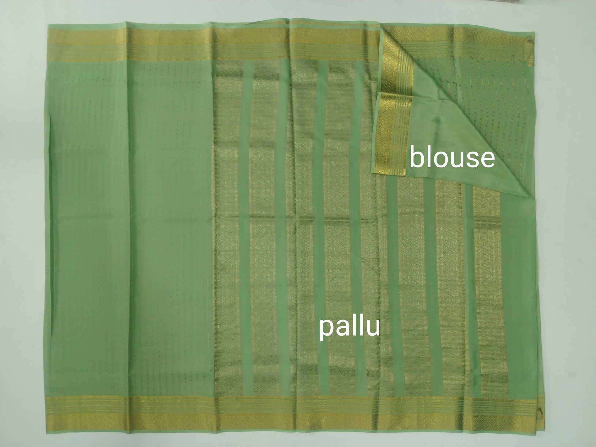 Pure Mysore Crepe Silk Saree with Golden Striped Butta & Rich Zari Border – Veena Silk