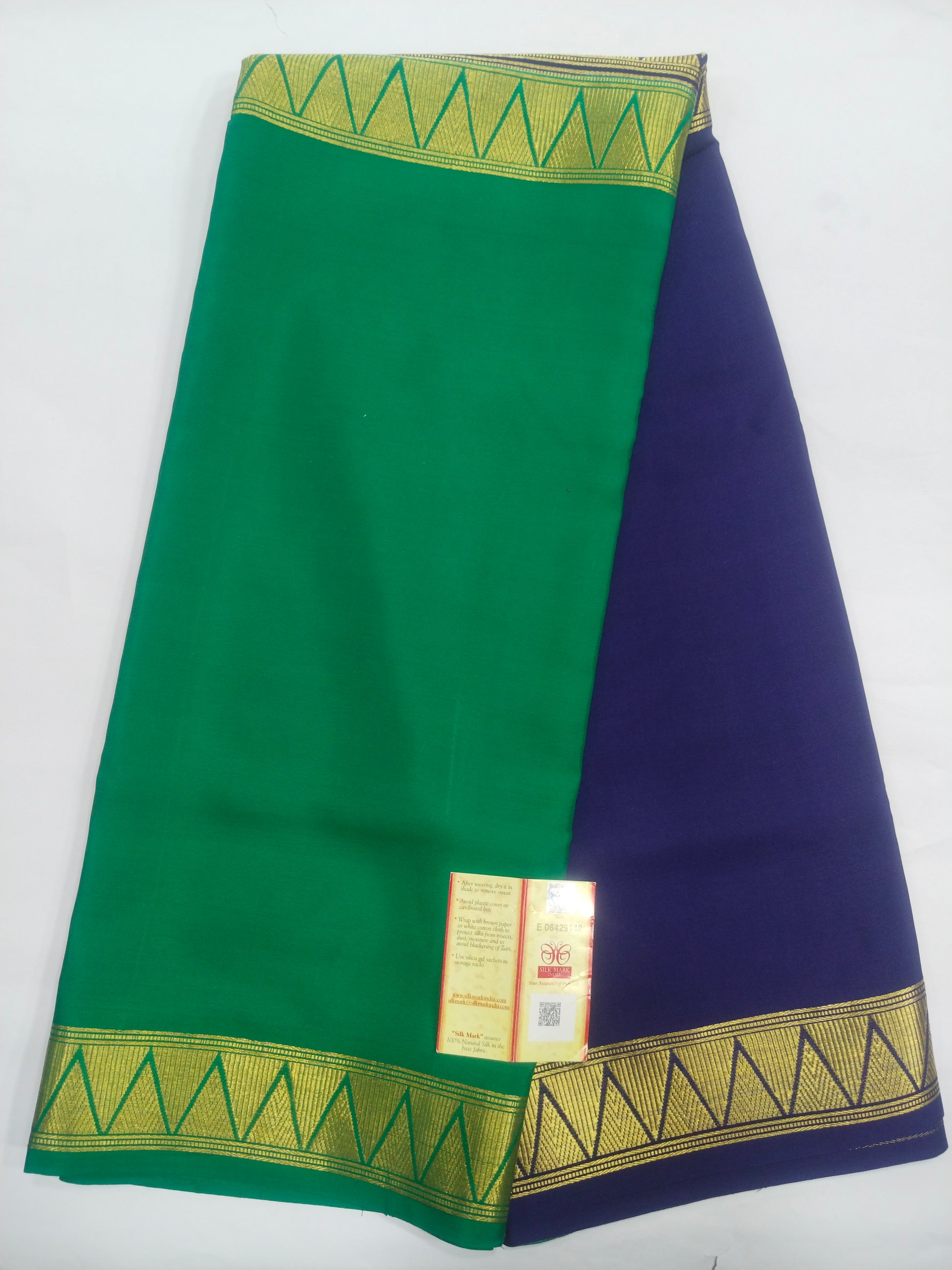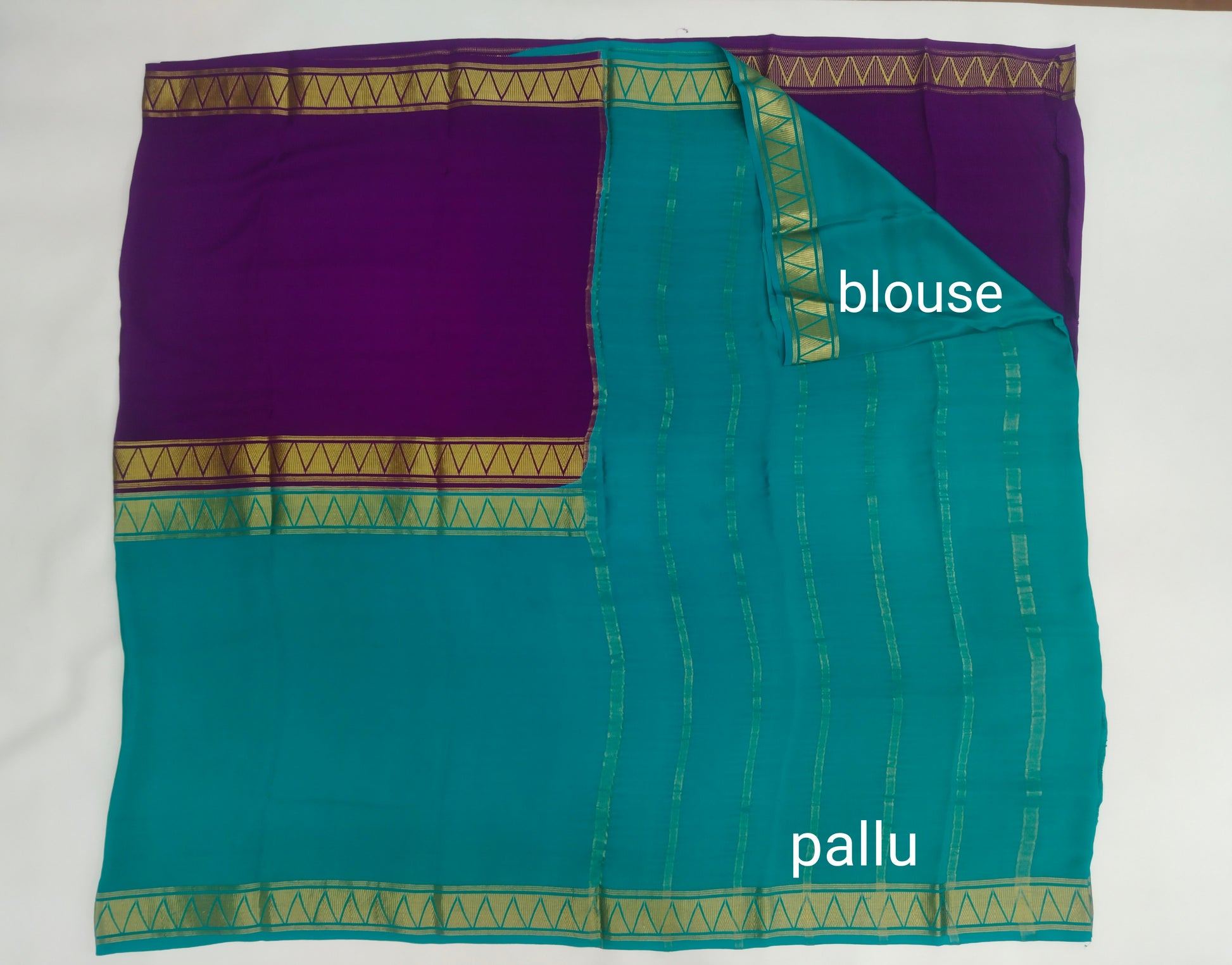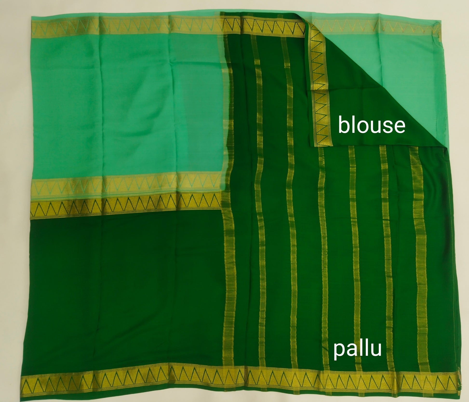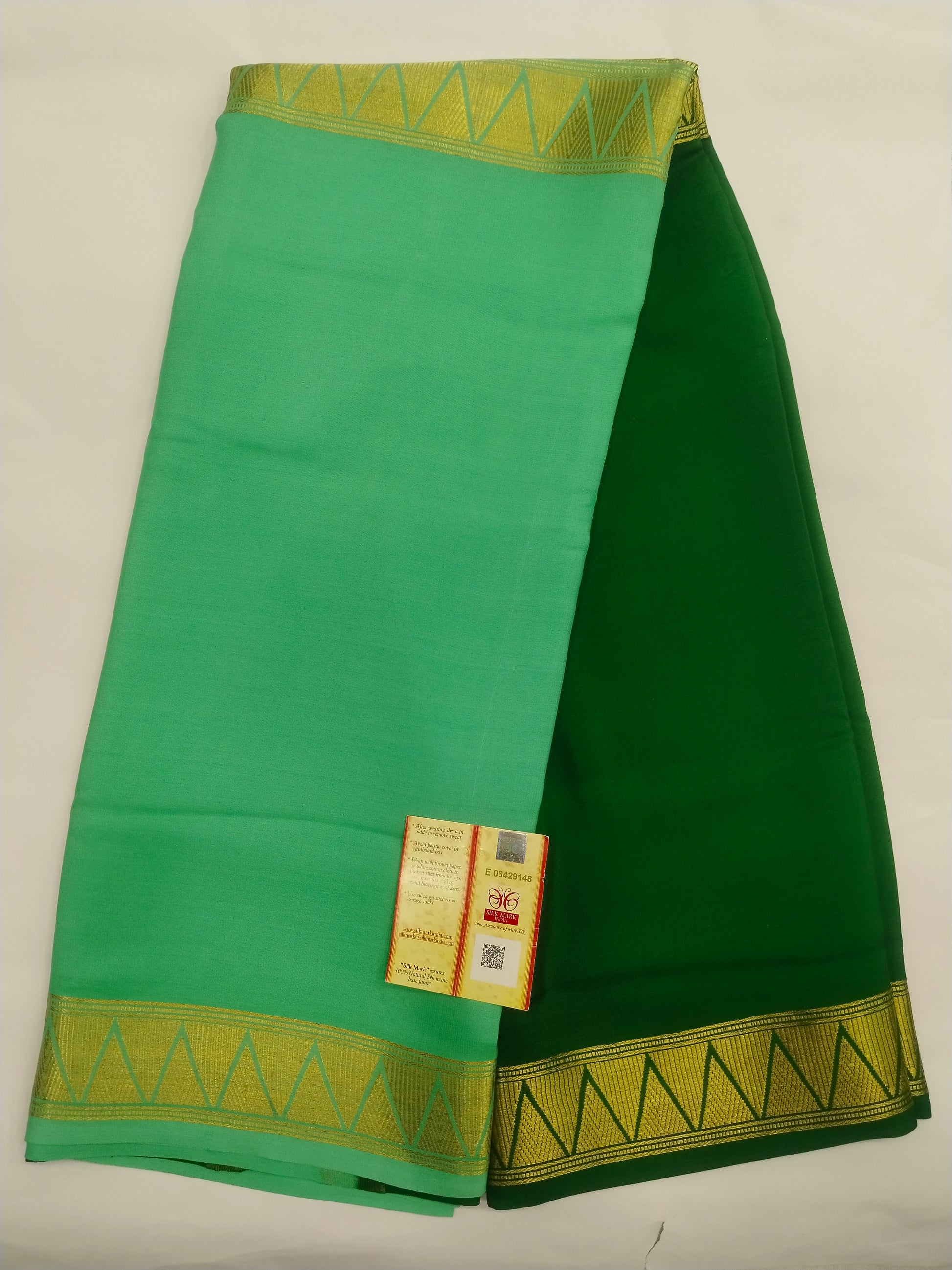 Pure Mysore Silk Crepe Saree with Half-and-Half Colours & Gold Zari Border | Veena Silk