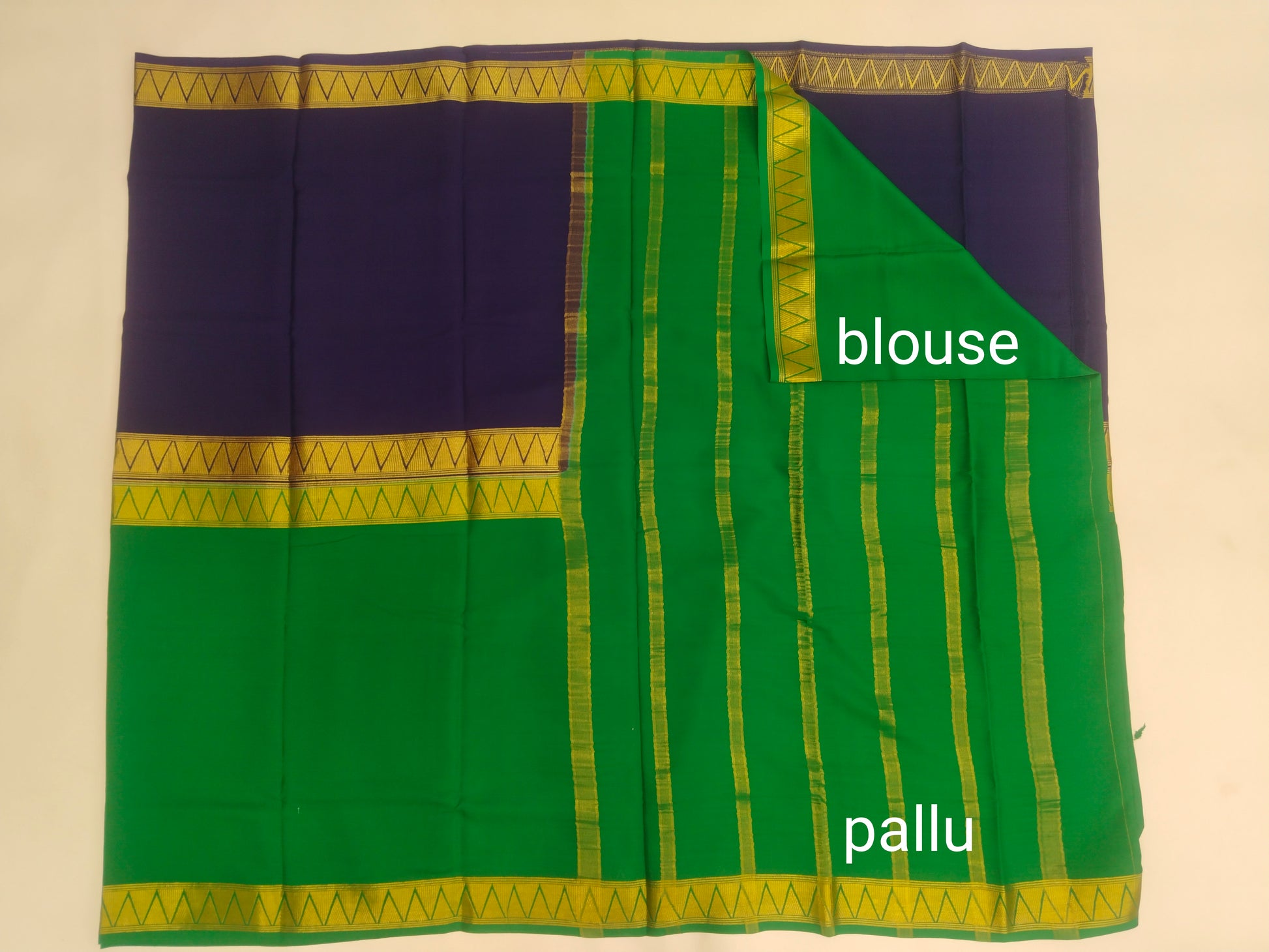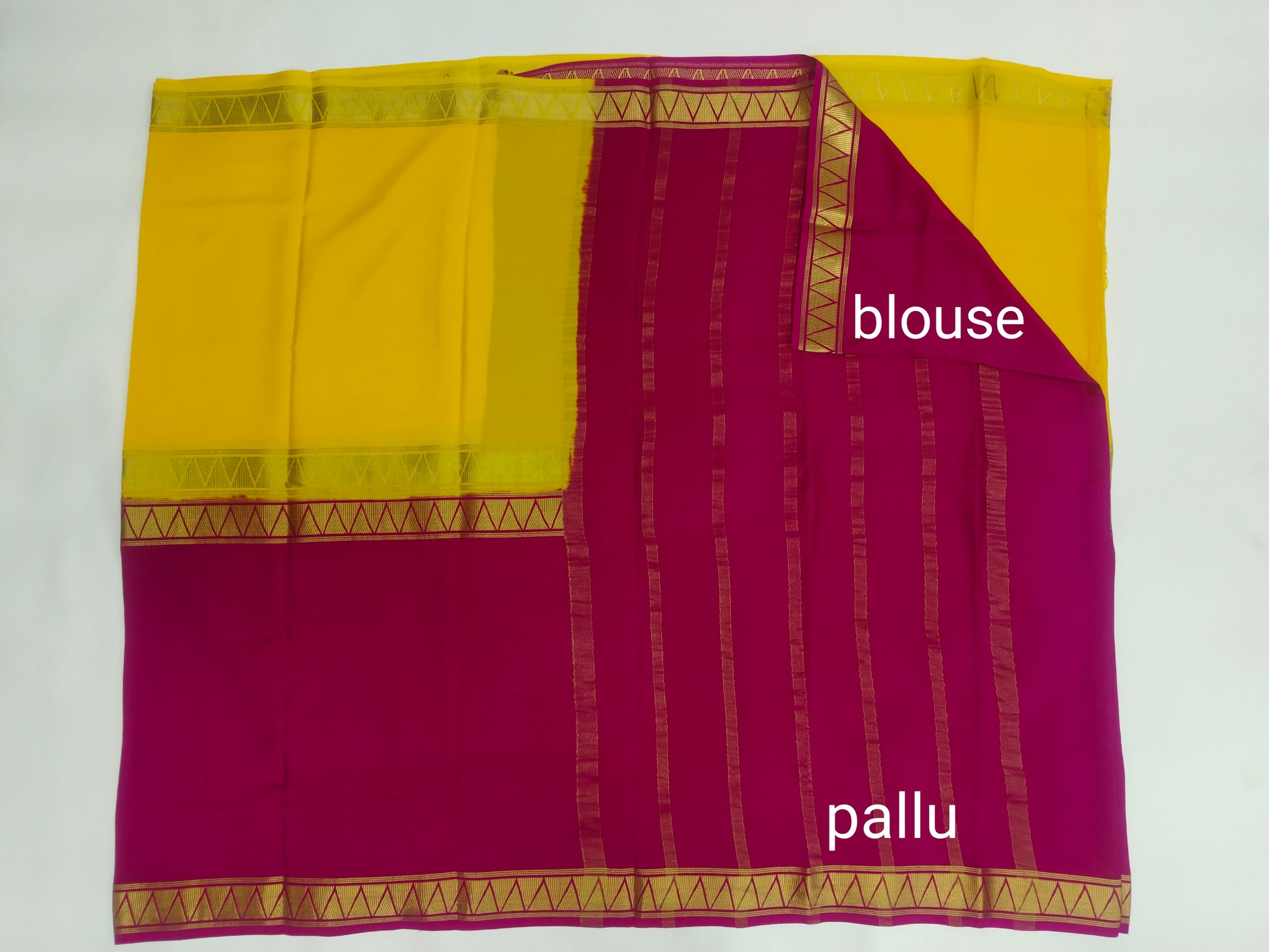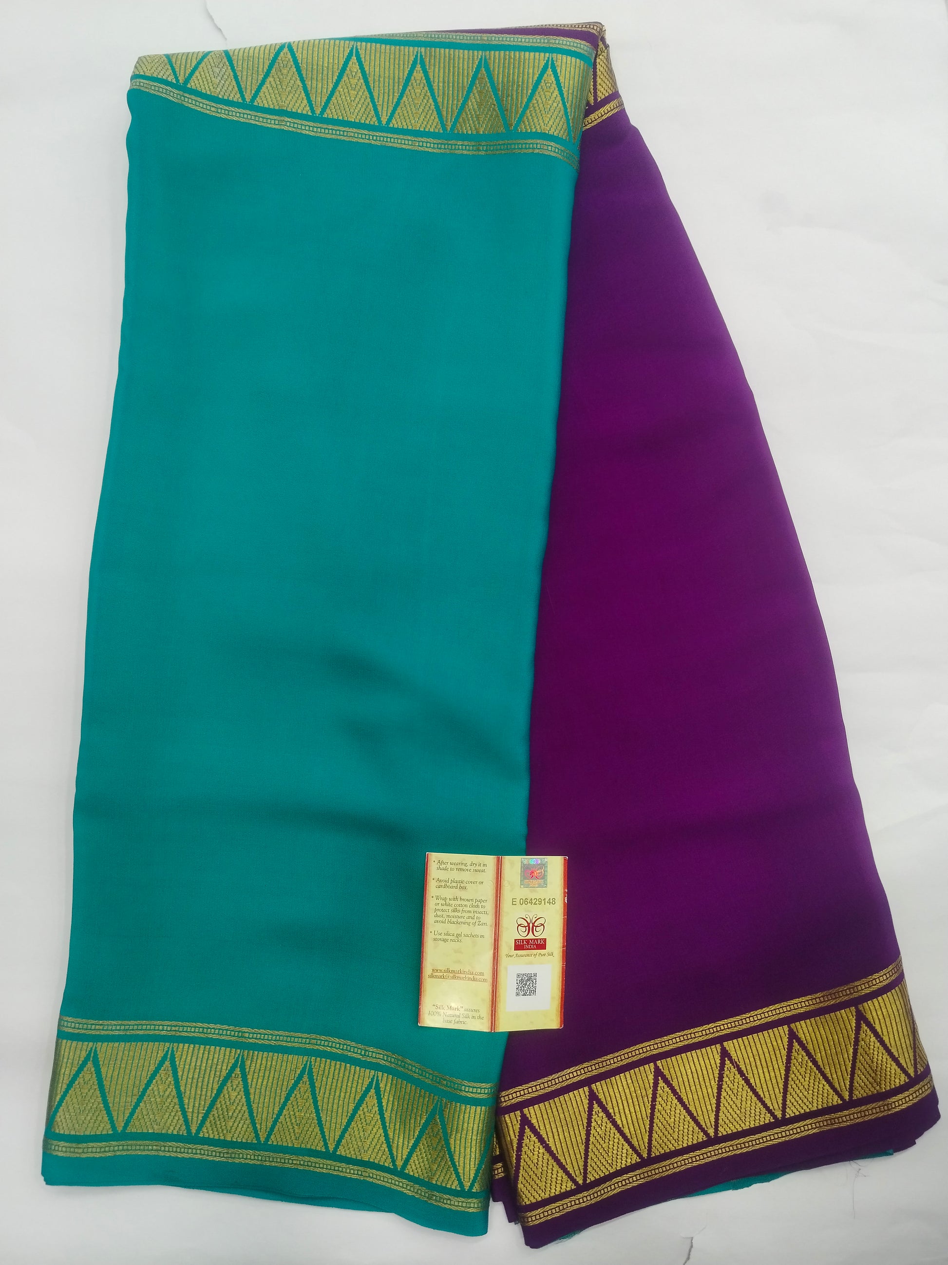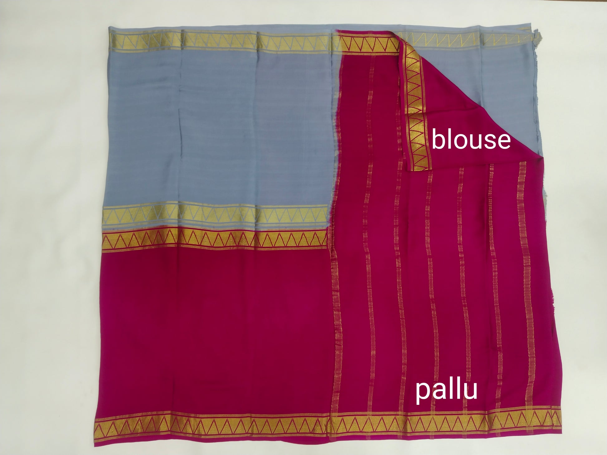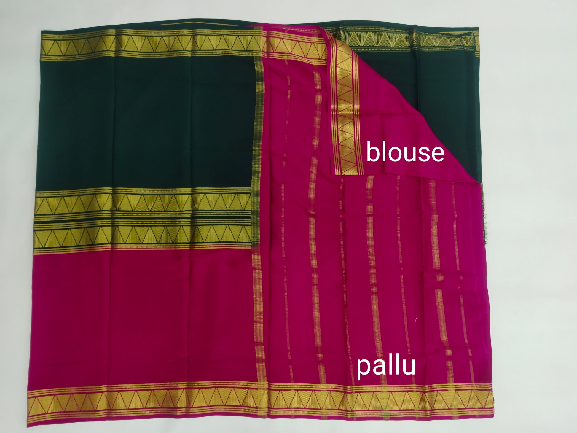 Pure Mysore Silk Crepe Saree with Half-and-Half Colours & Gold Zari Border | Veena Silk