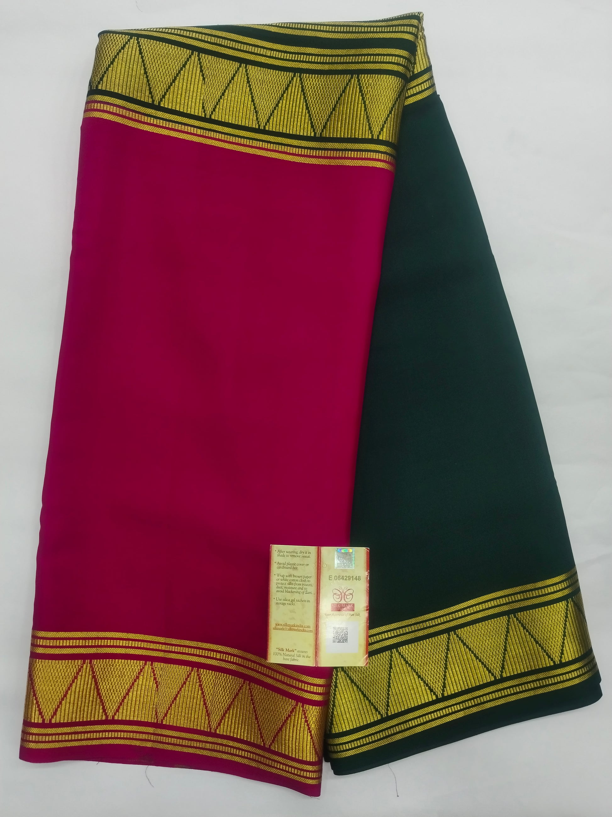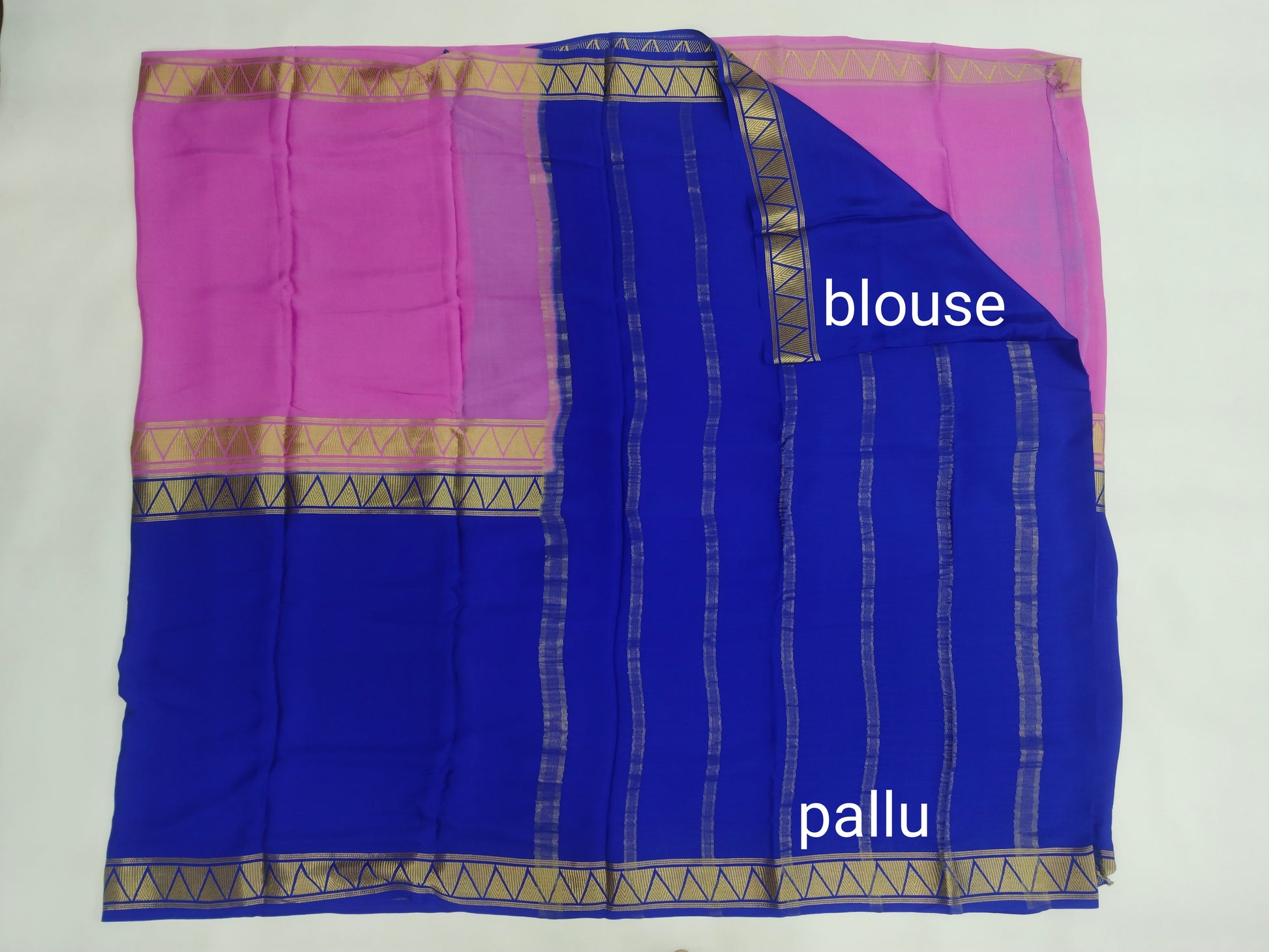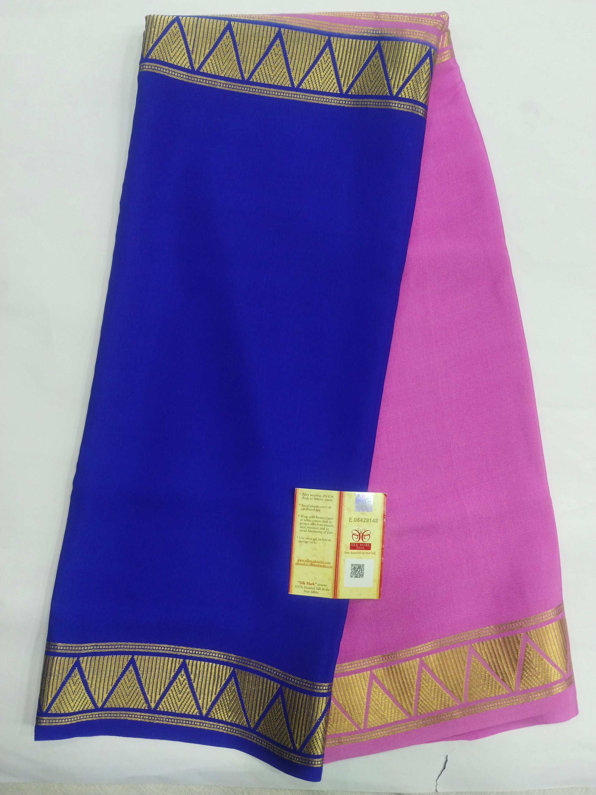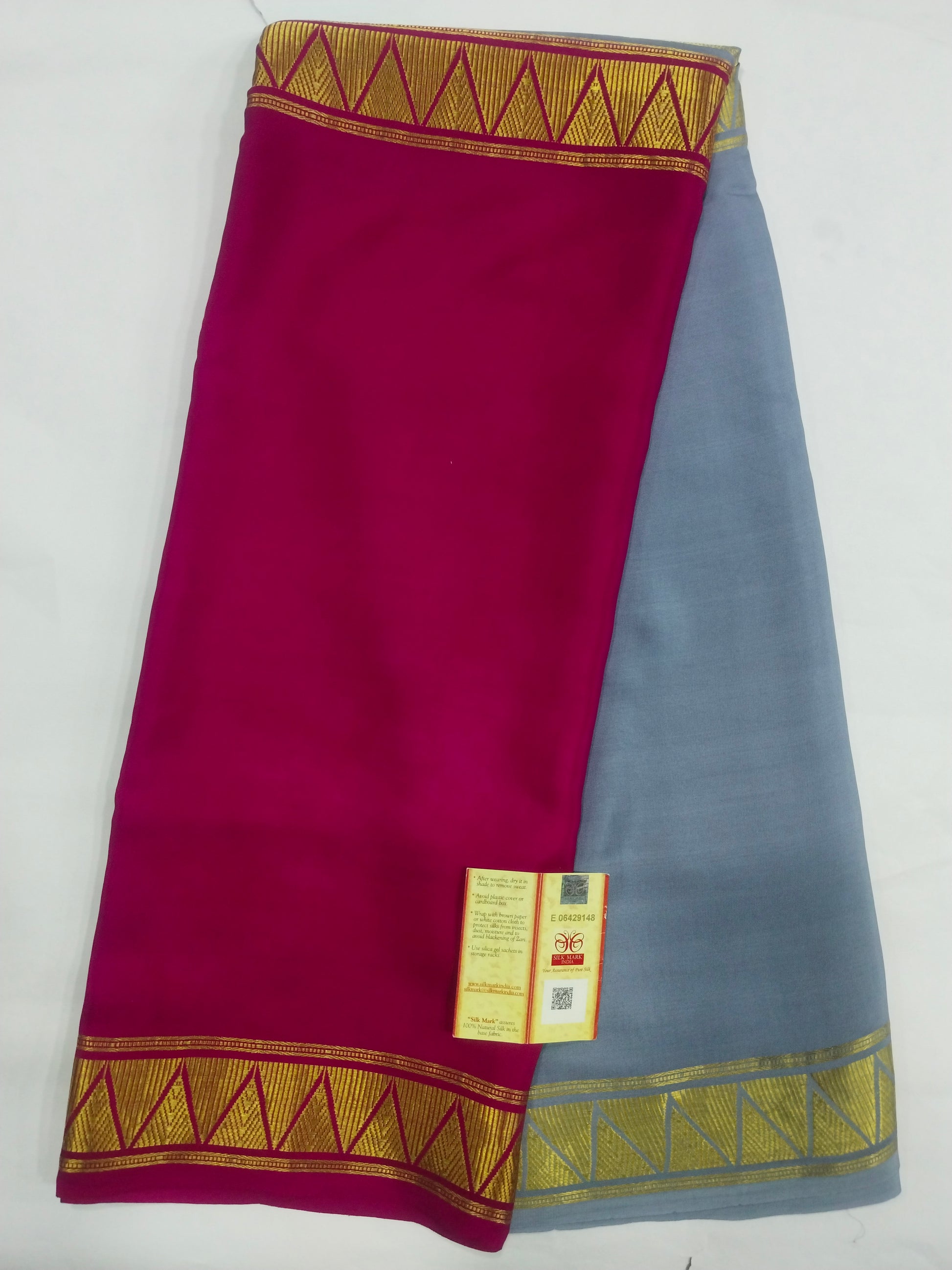 Pure Mysore Silk Crepe Saree with Half-and-Half Colours & Gold Zari Border | Veena Silk