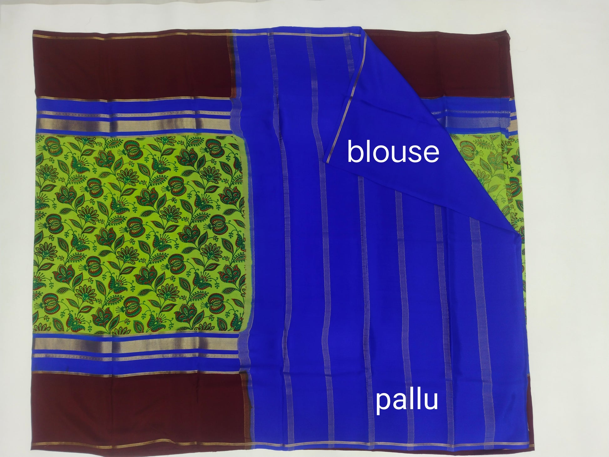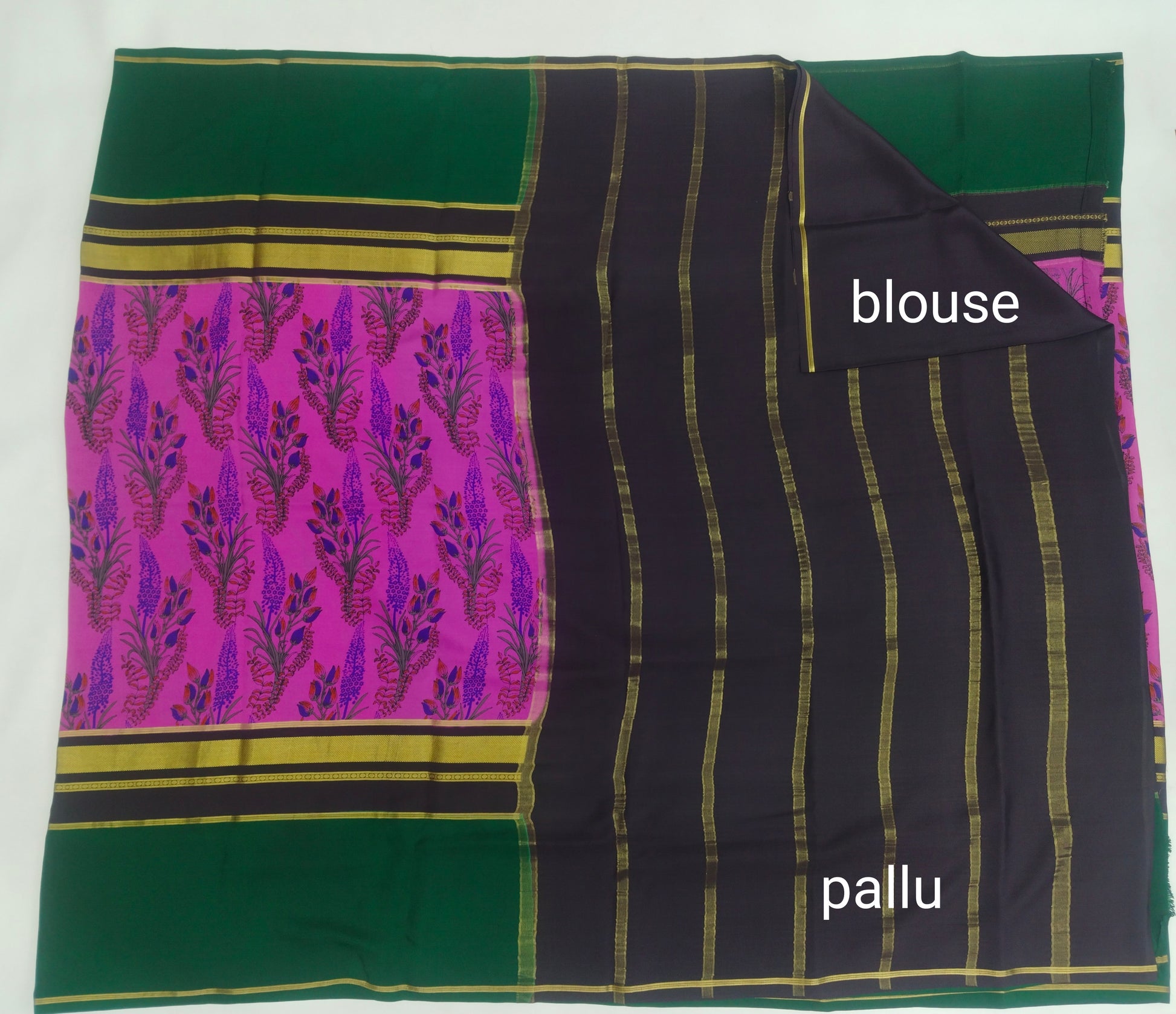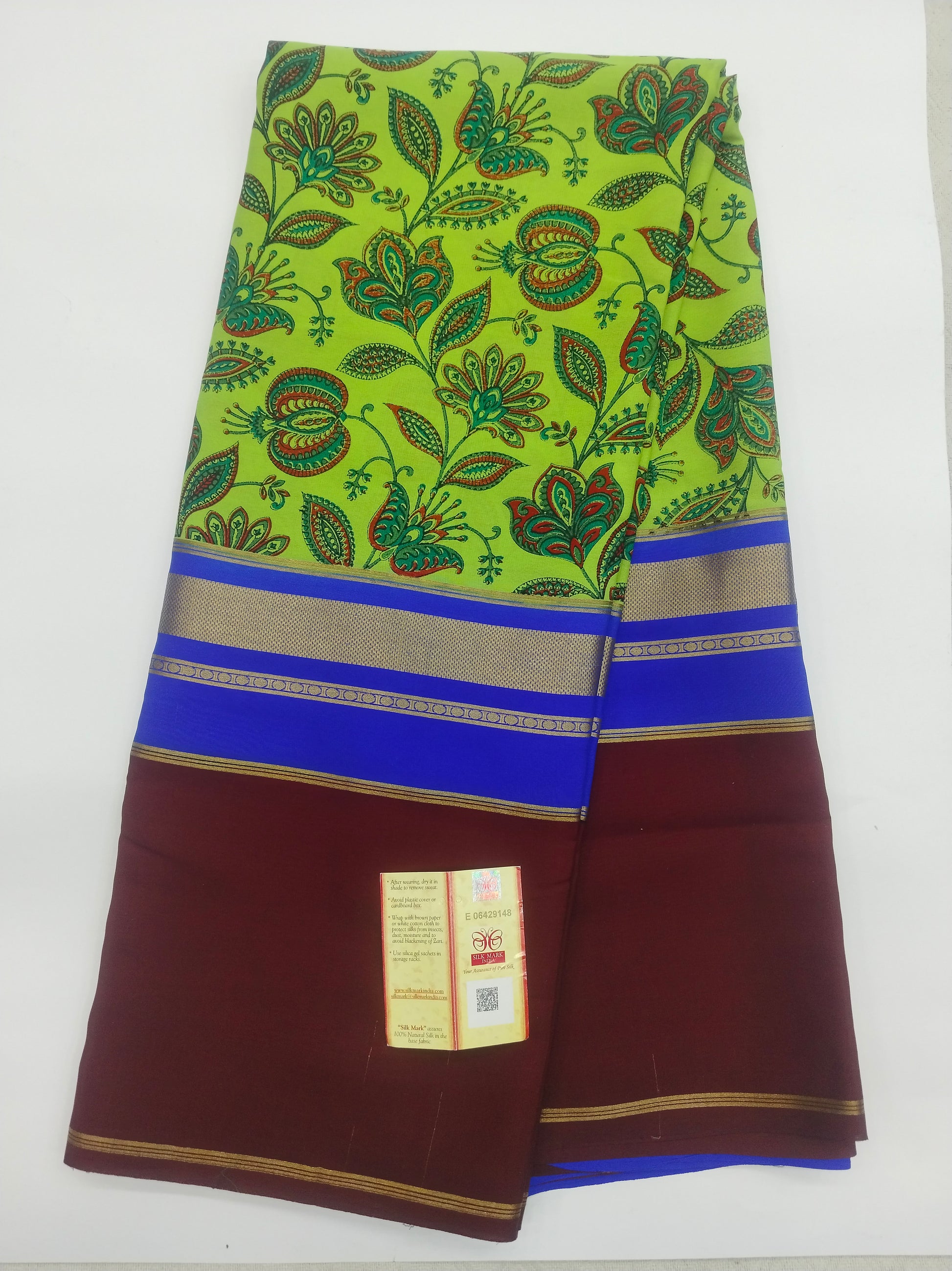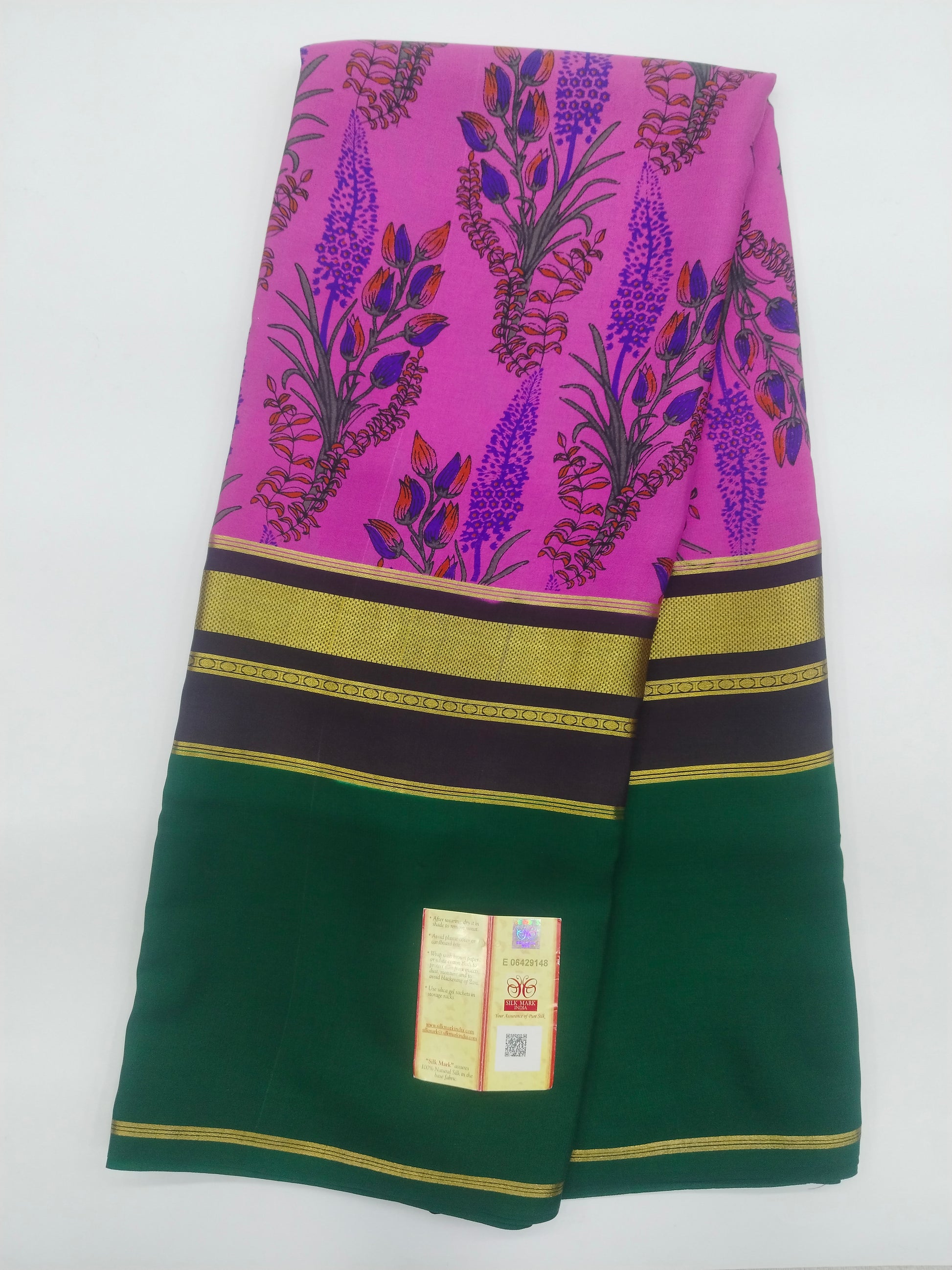 Pure Mysore Silk Printed Crepe Saree with Contrast Border | Lightweight & Elegant | Veena Silk