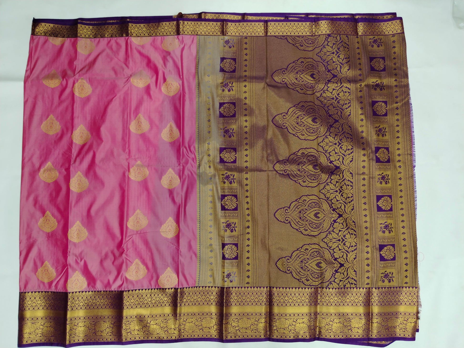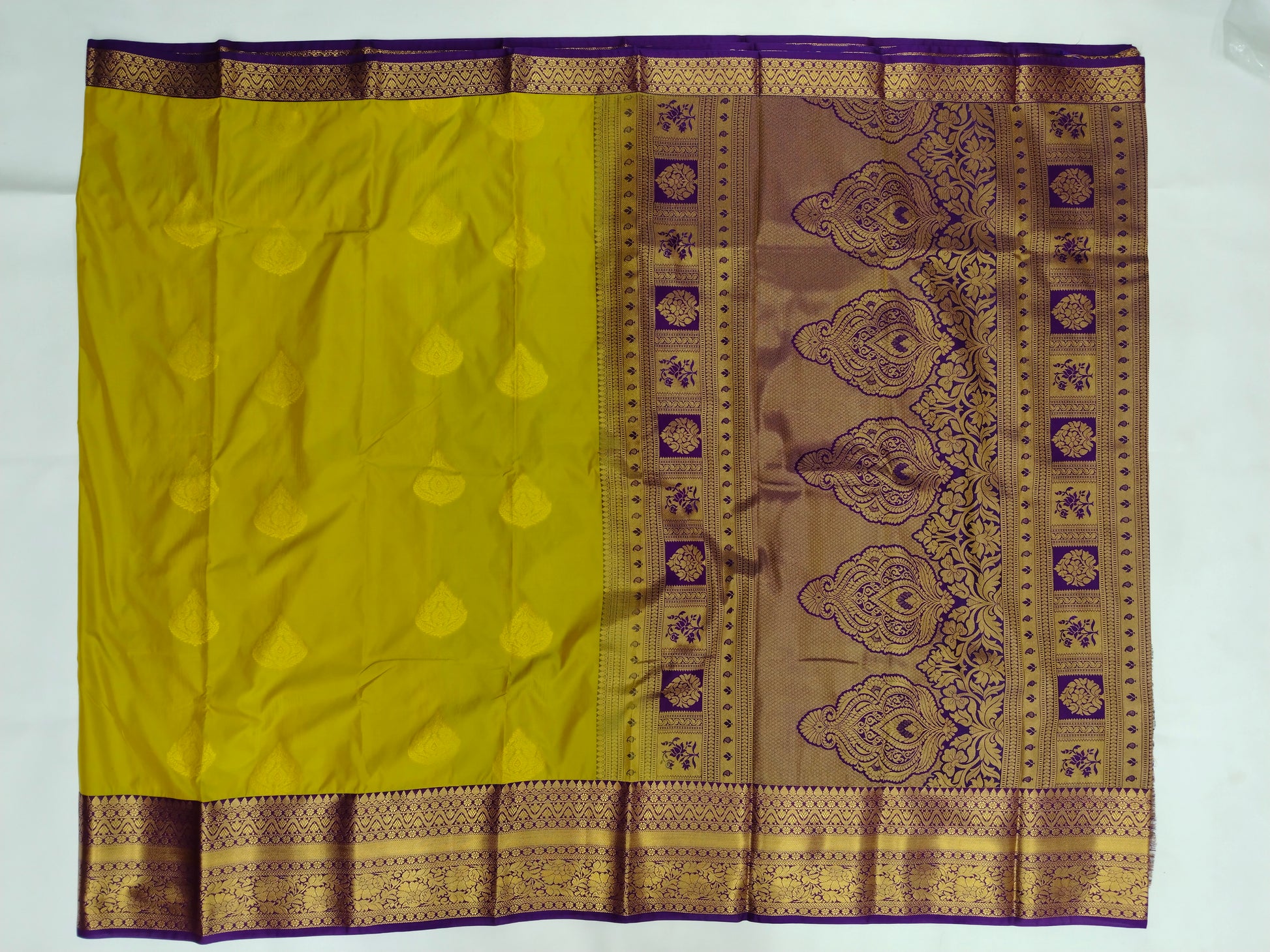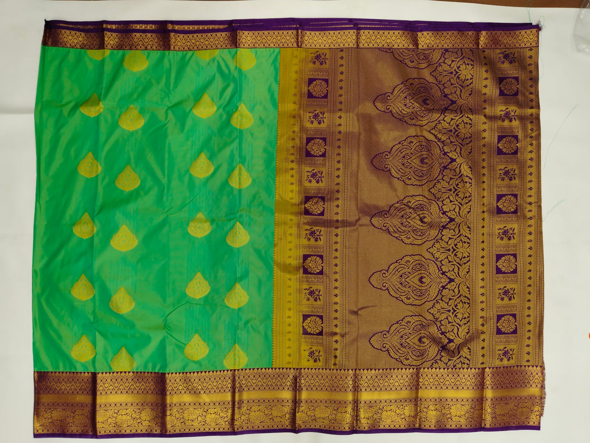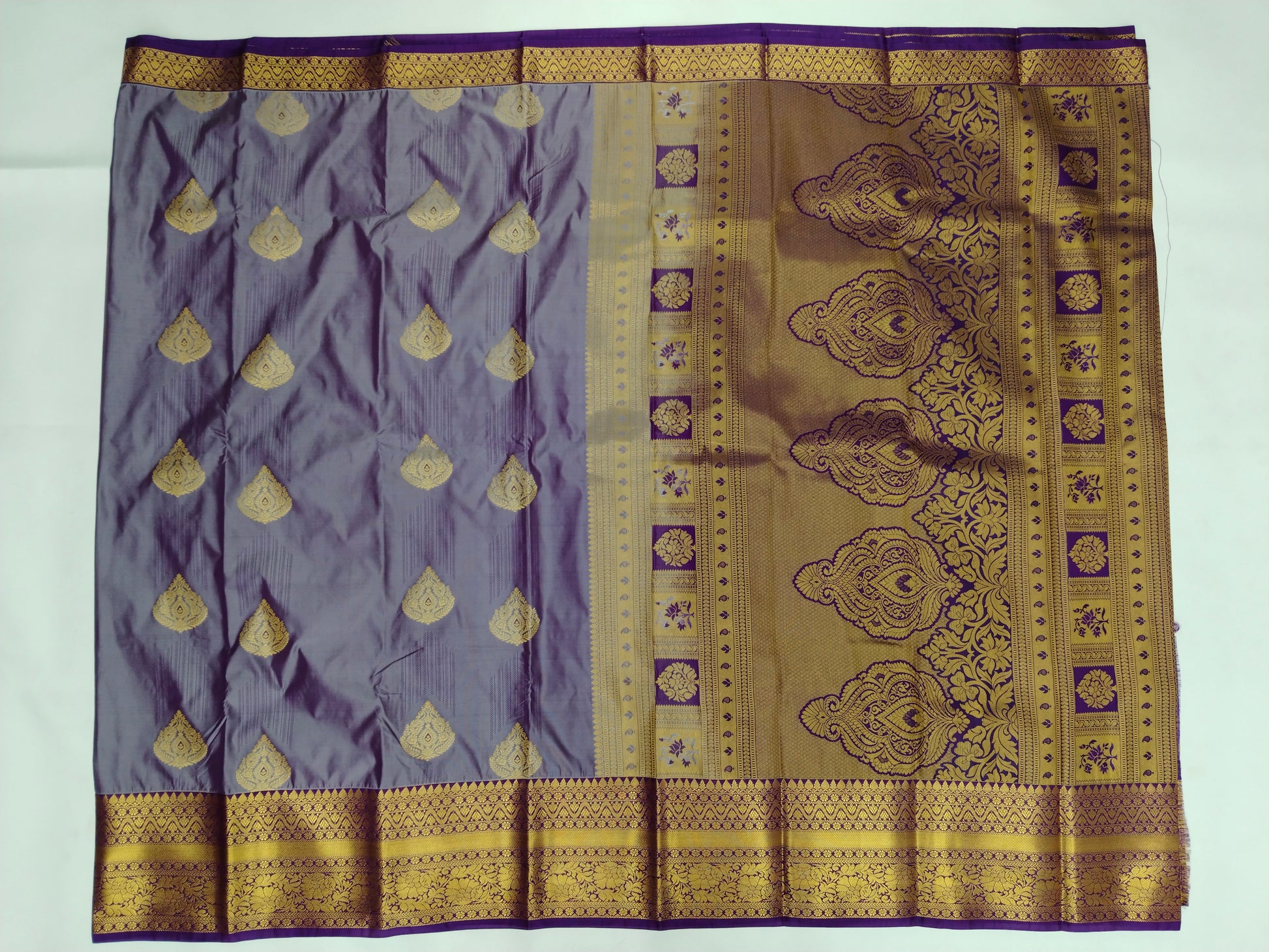 Semi Kanchipuram silk saree with fancy buta and fancy line design with contrast border with gold zari-veena silk