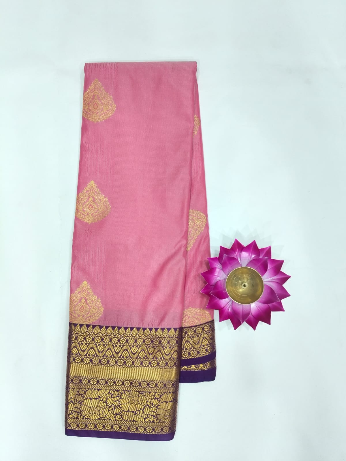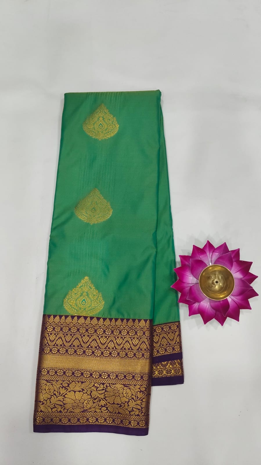 ๐ Semi Kanchipuram Silk Saree with Fancy Buta & Contrast Border ๐
