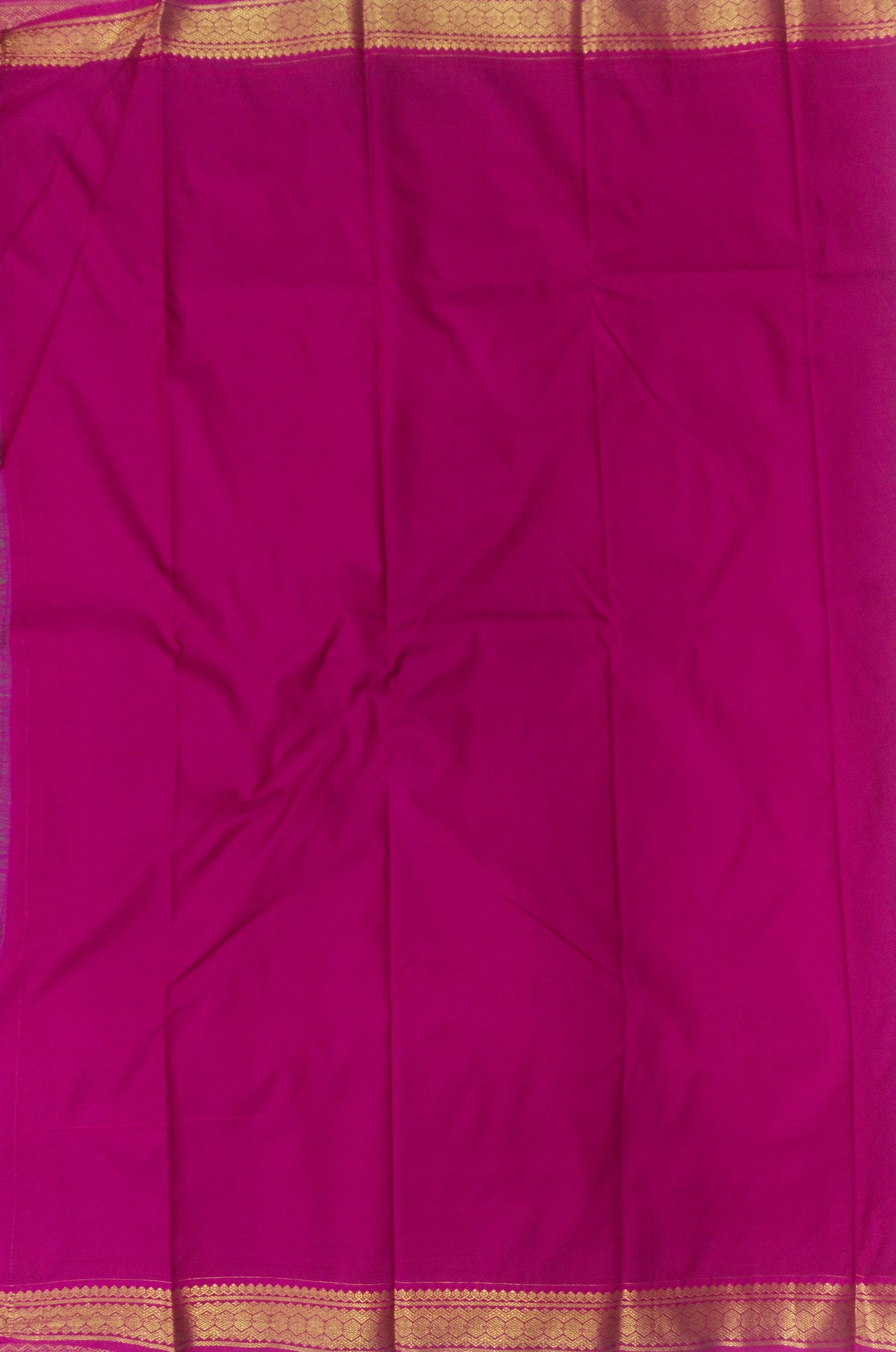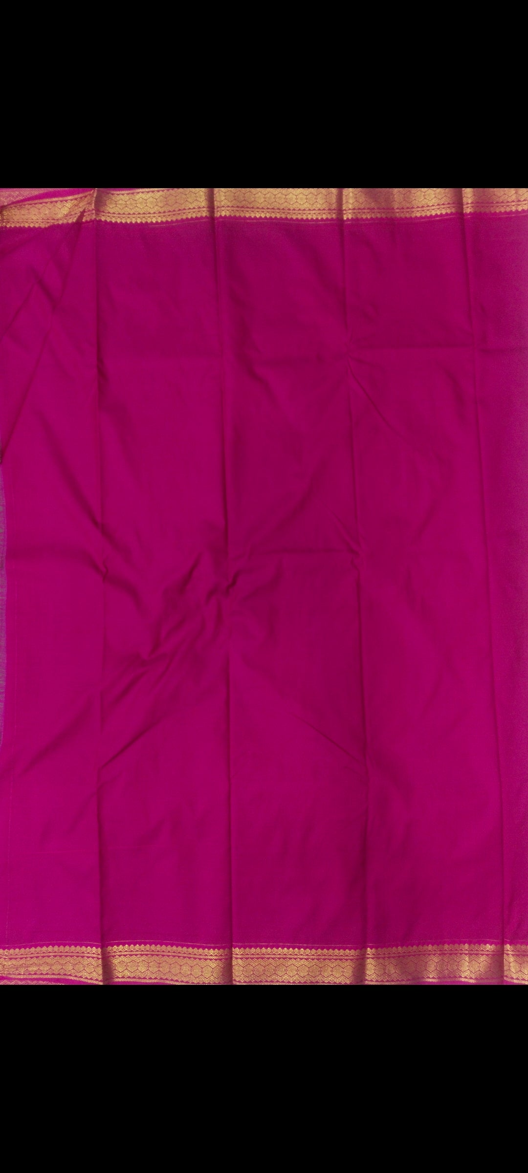Combining festive elegance with lightweight comfort, this saree is perfect for all-day celebrations. The contrast blouse and gold zari detailing add a regal touch, making it a beautiful addition to your ethnic wardrobe.