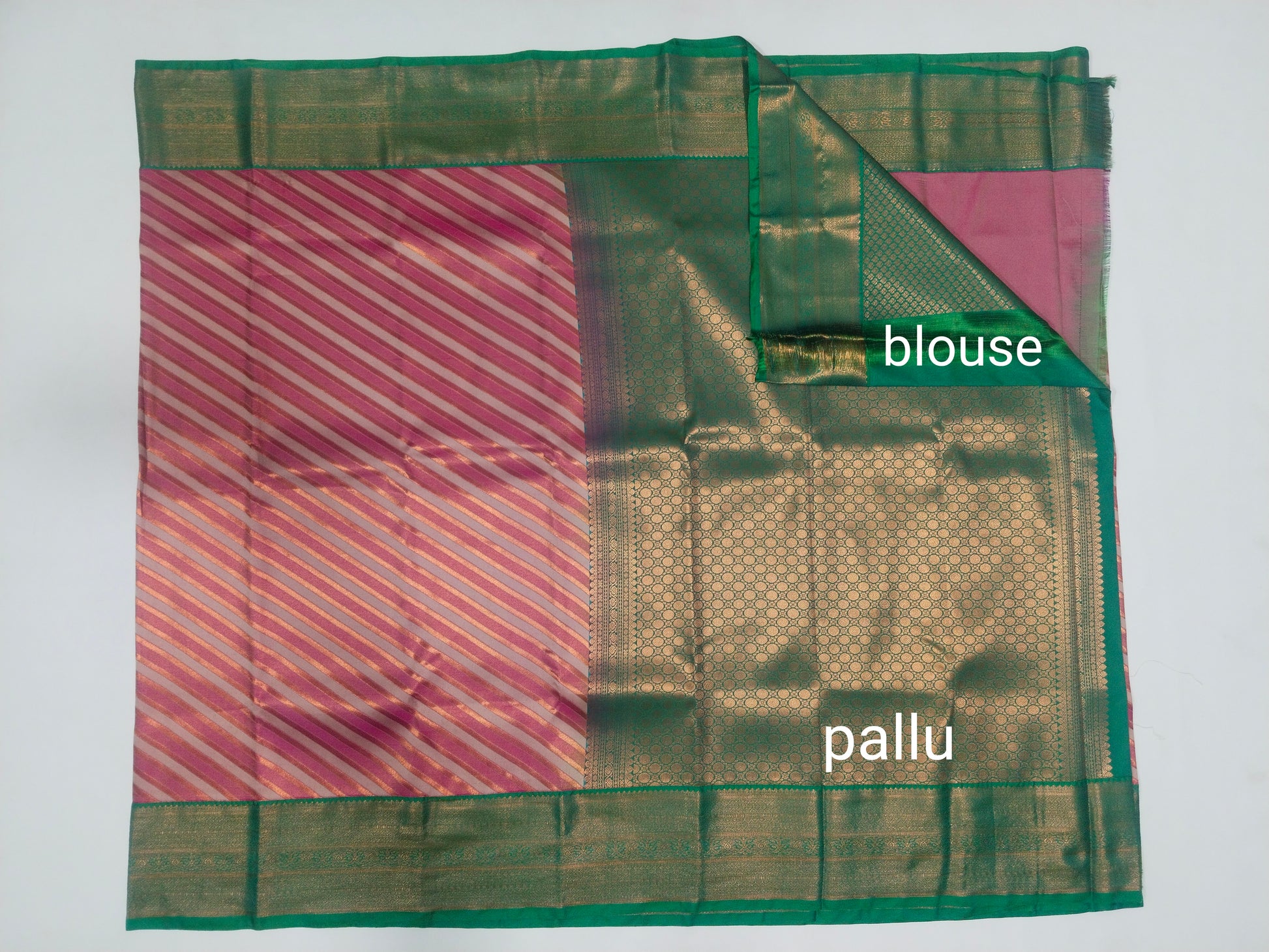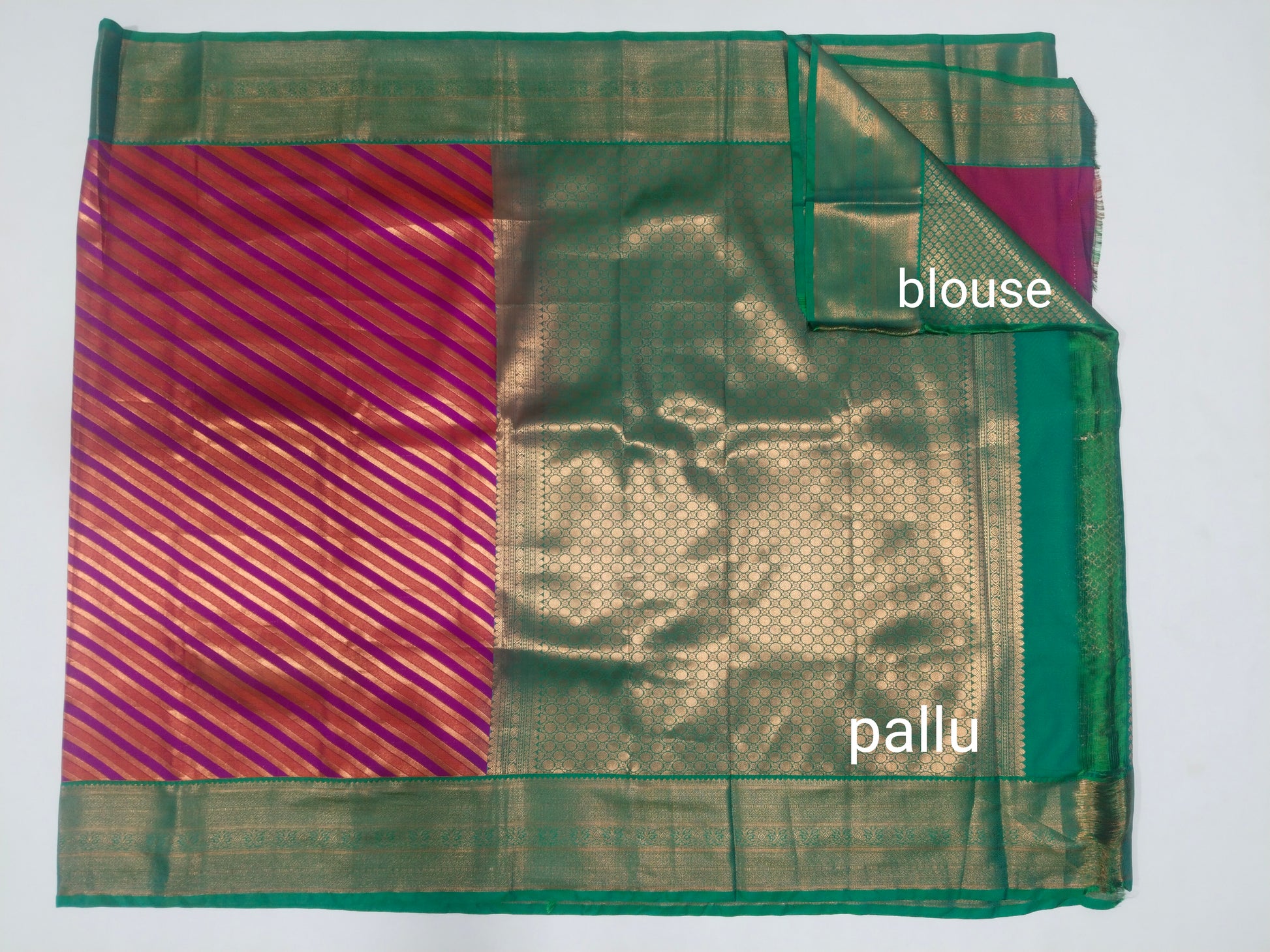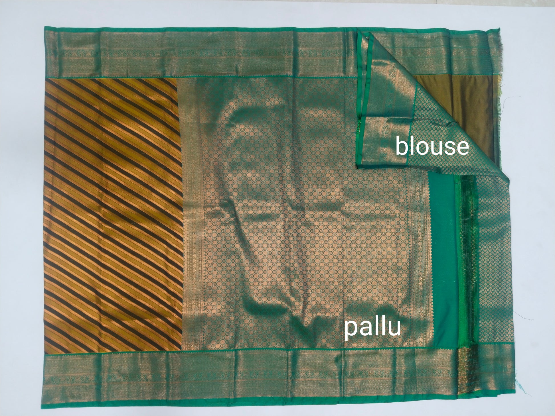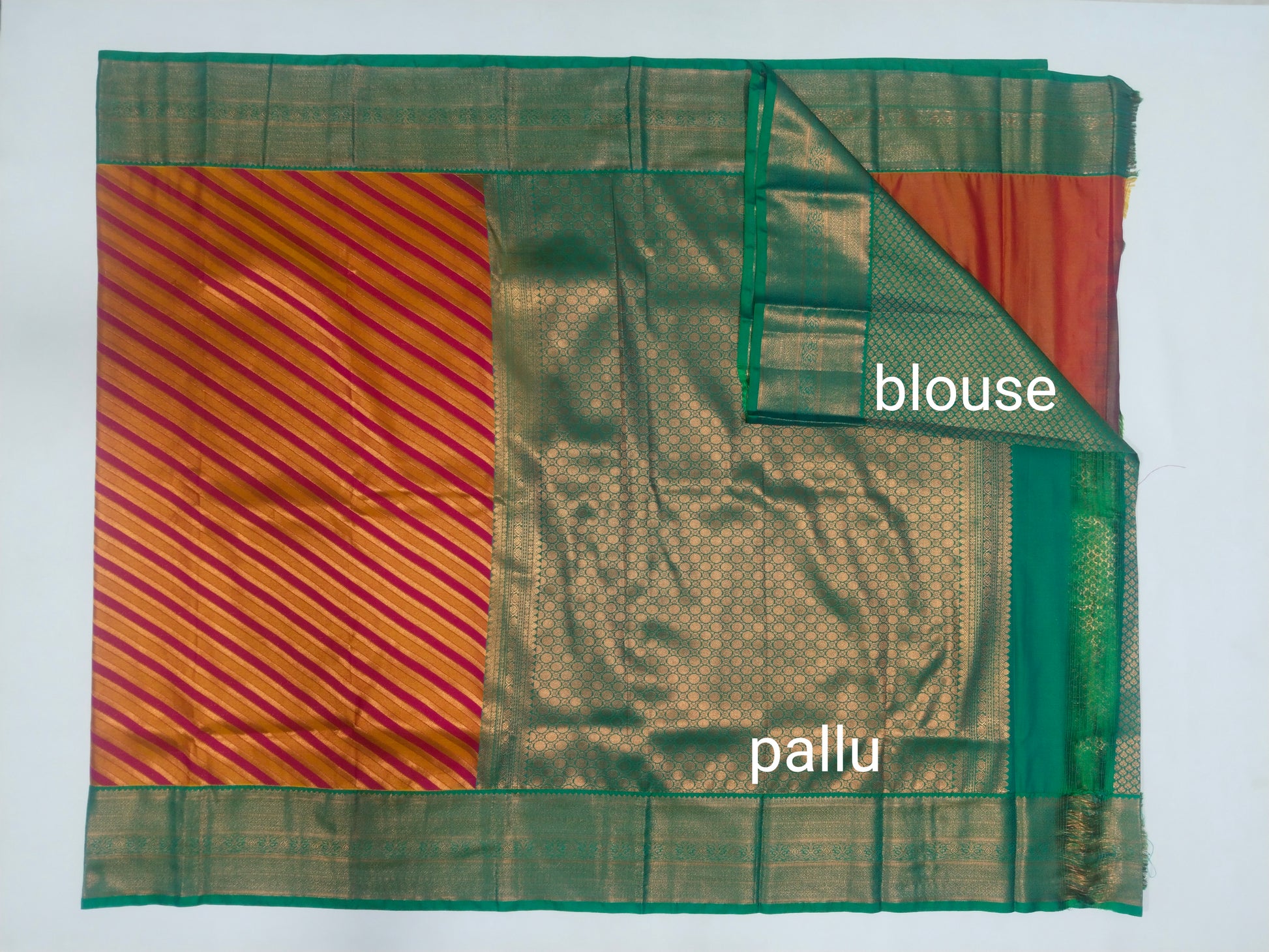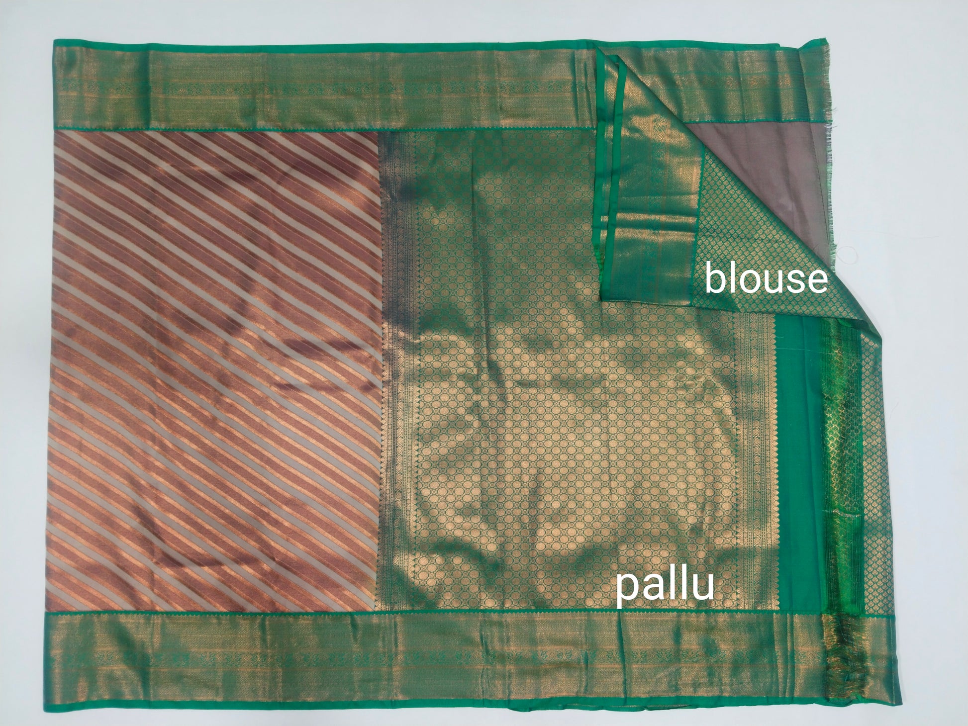 Semi Kancheepuram Saree with Brocade Blouse - Festive Strip Pattern Elegance-veena silk