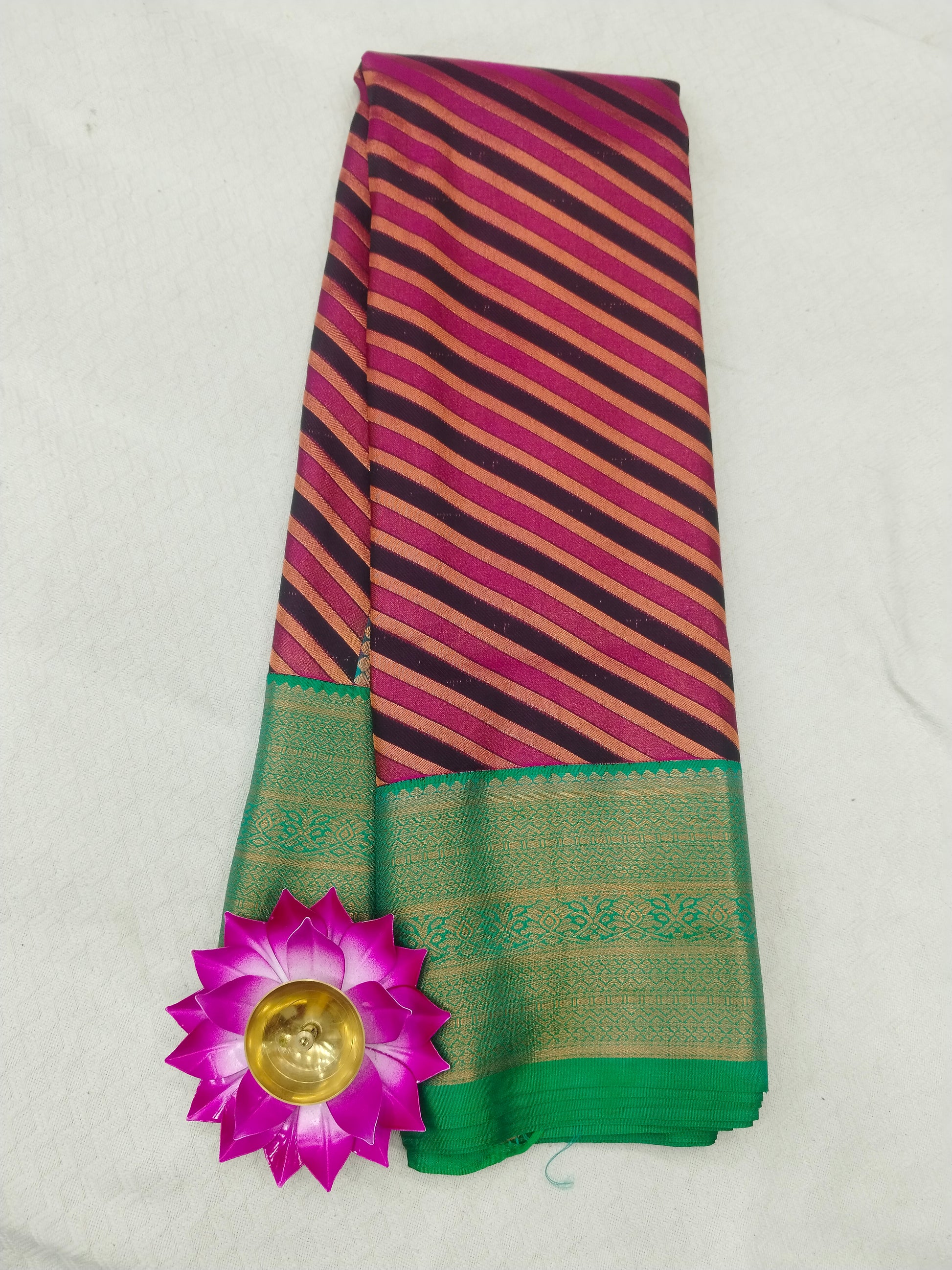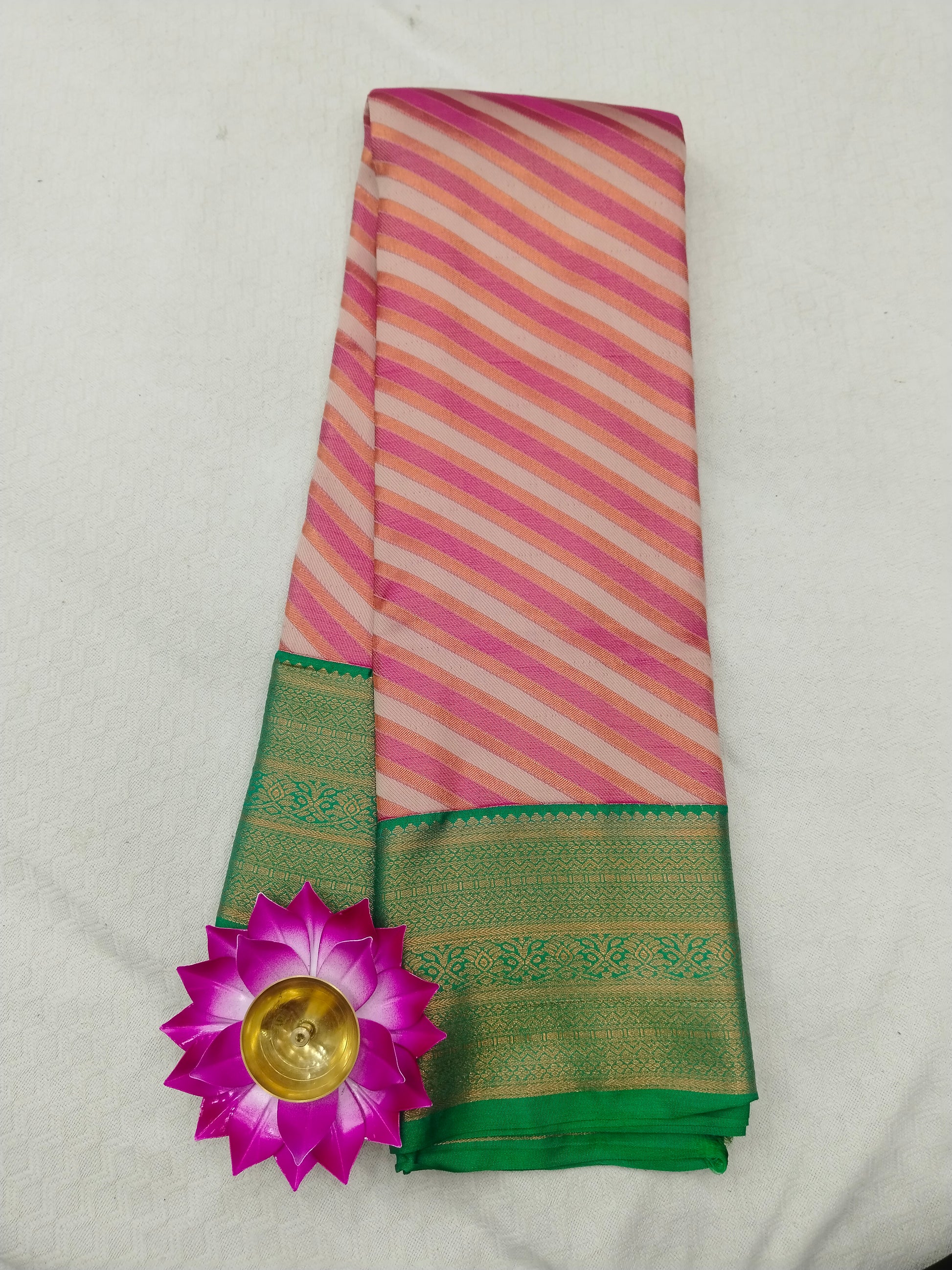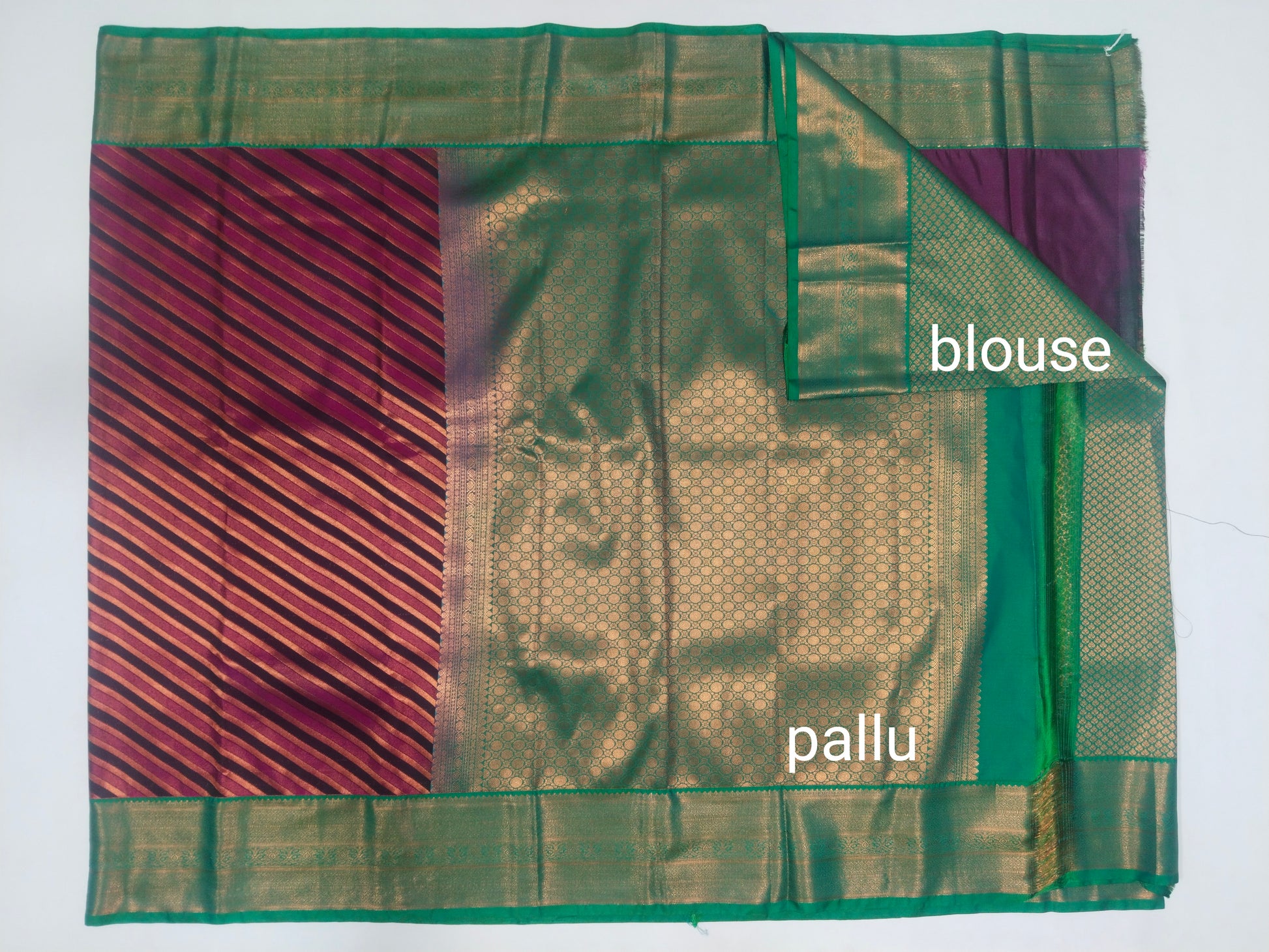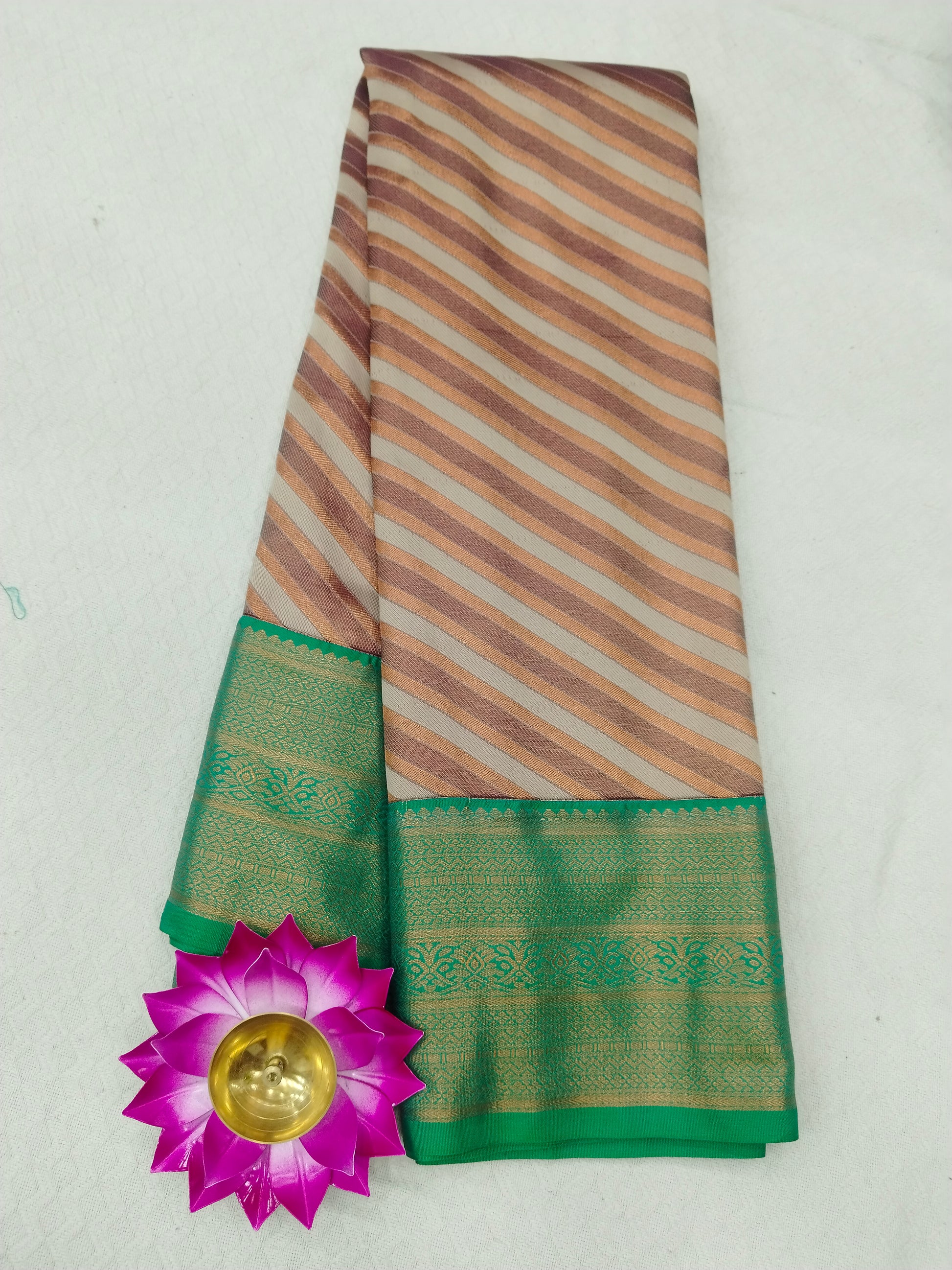 Semi Kancheepuram Saree with Brocade Blouse - Festive Strip Pattern Elegance-veena silk