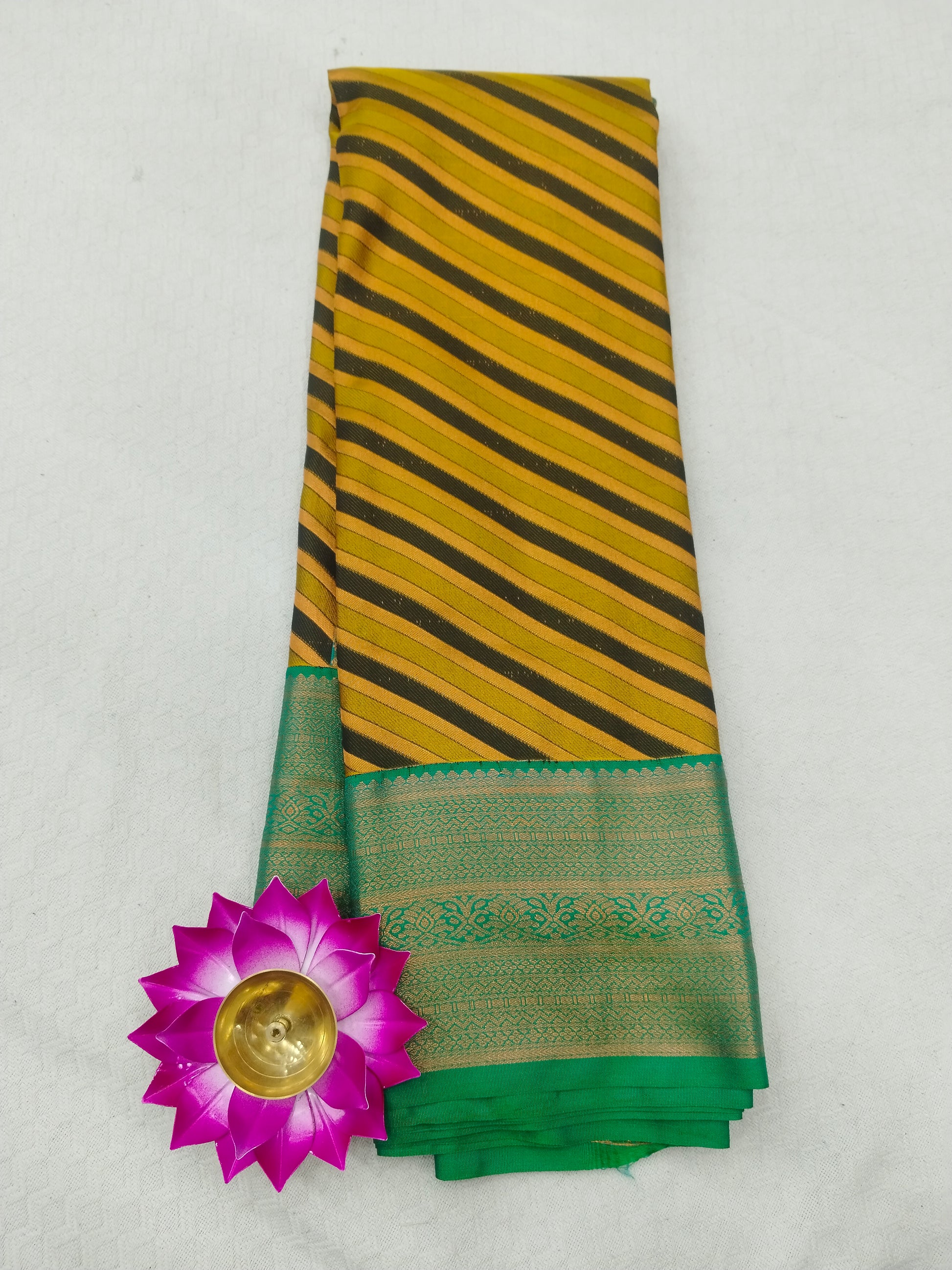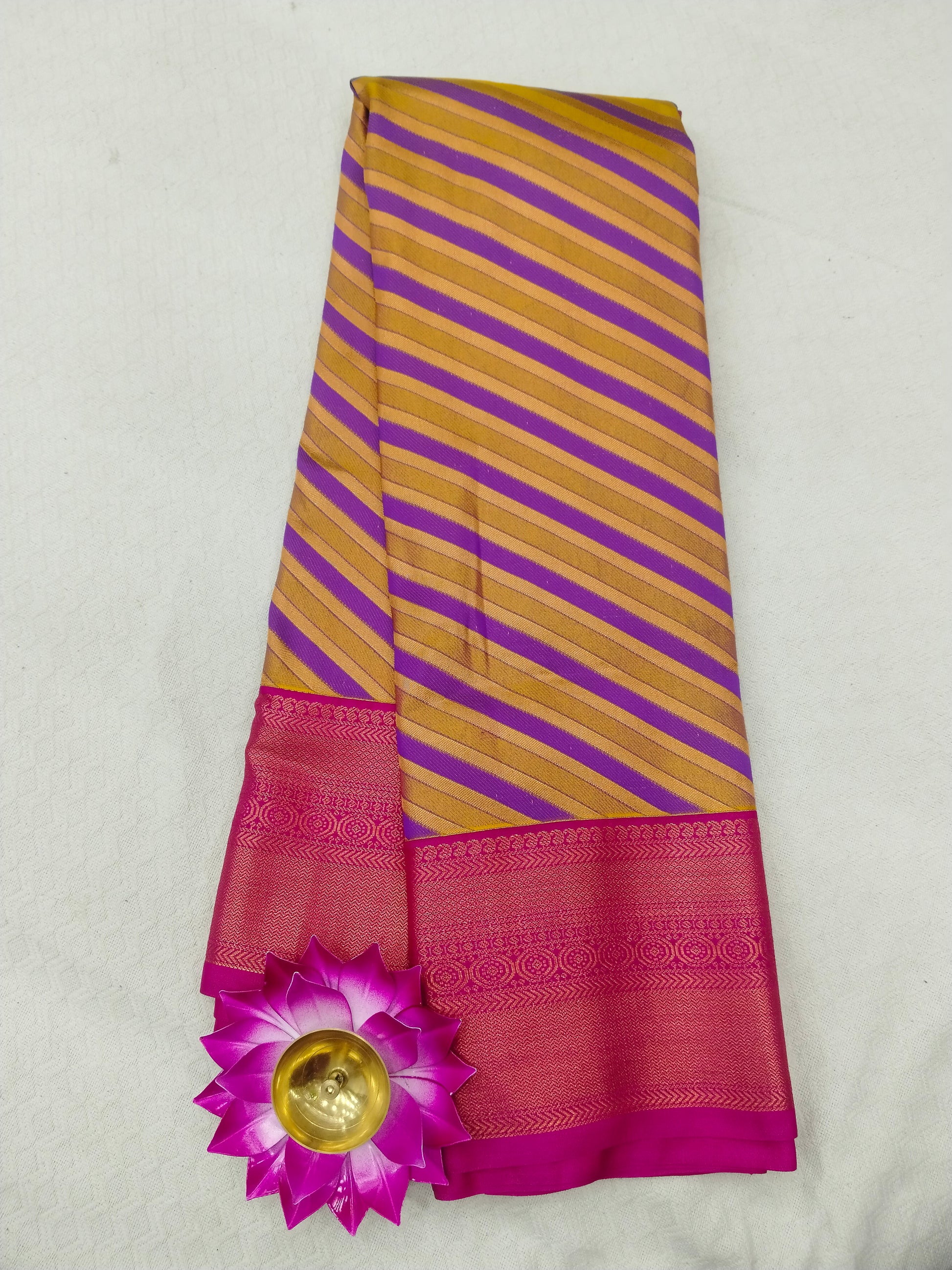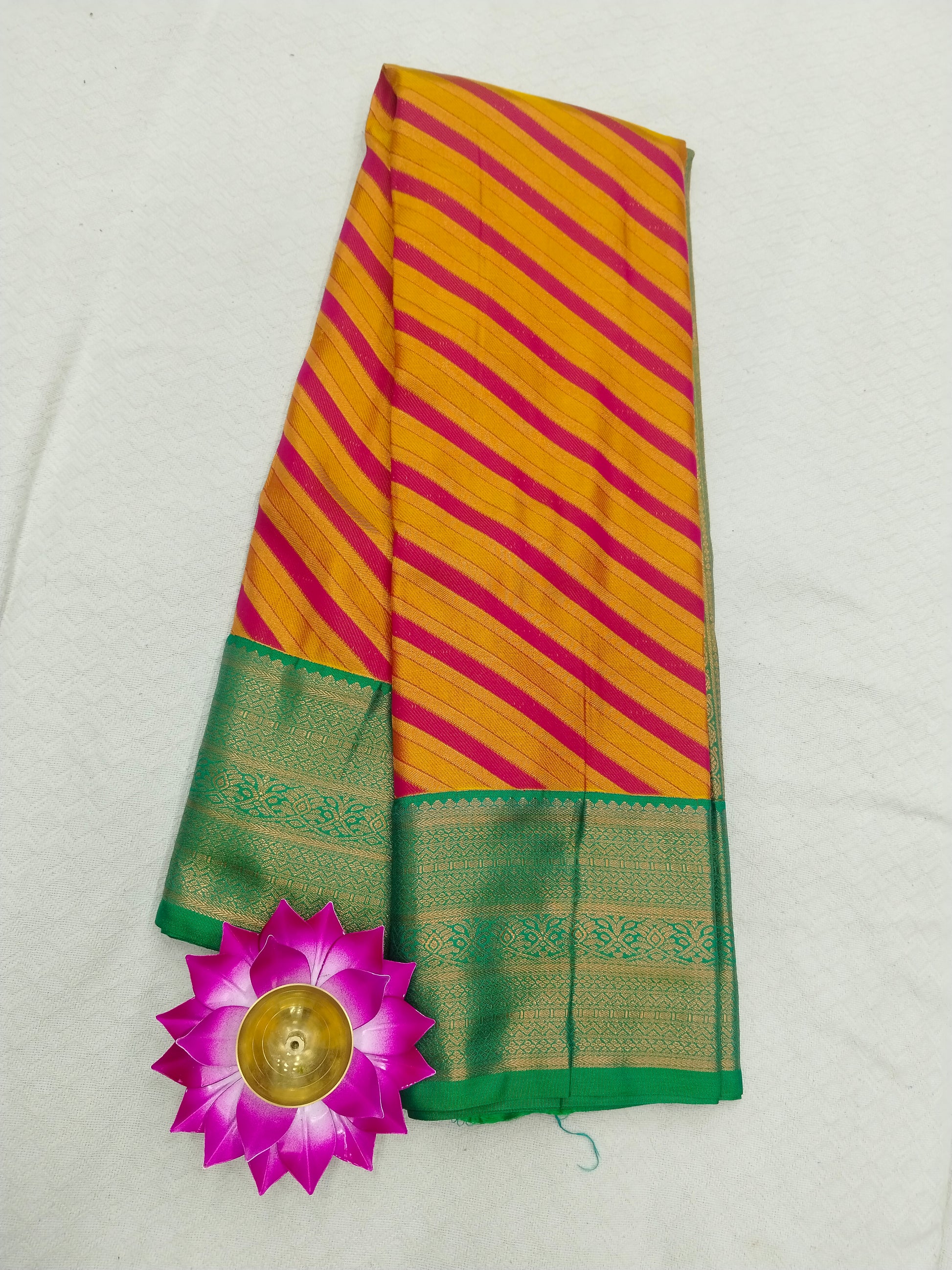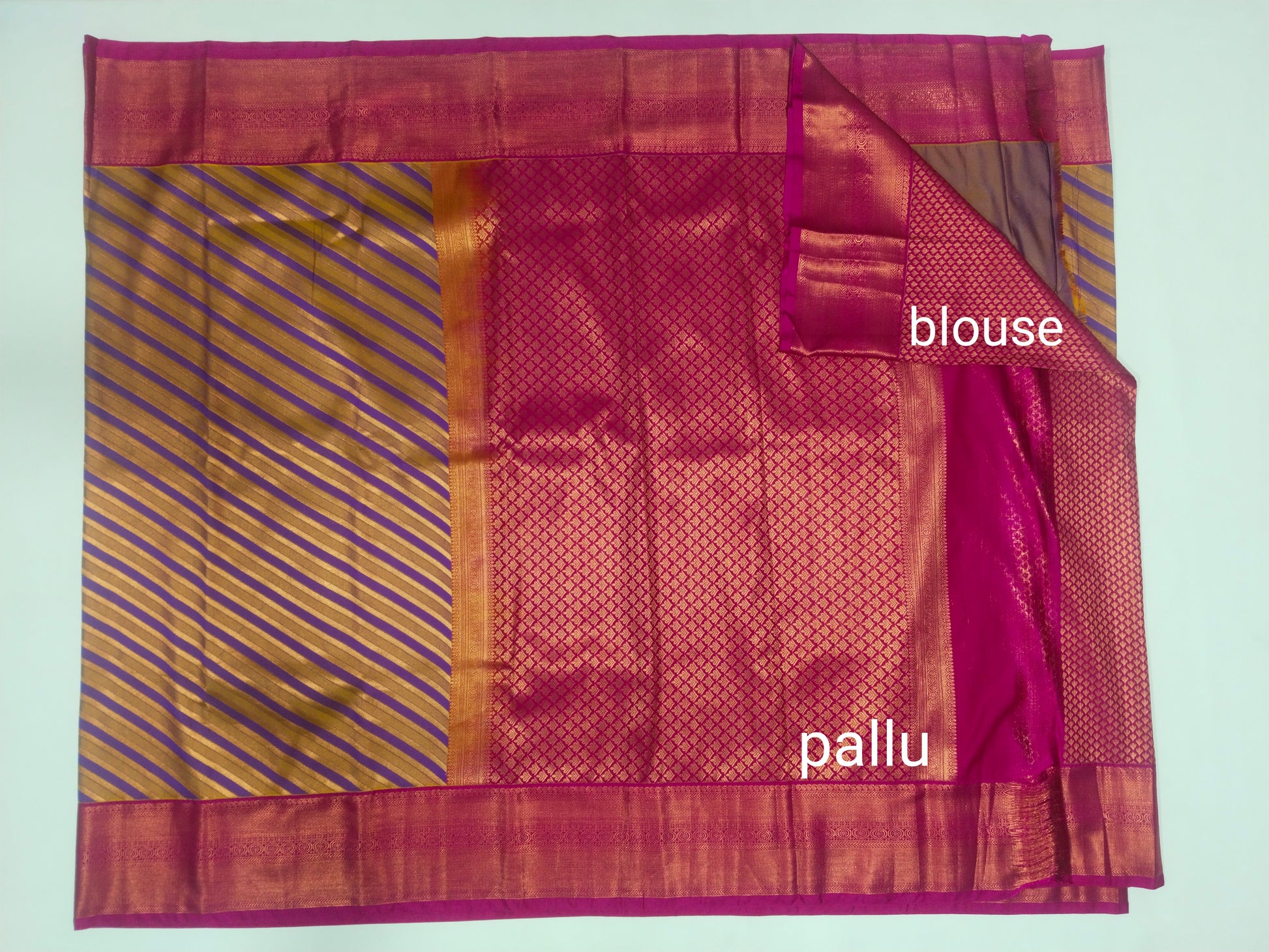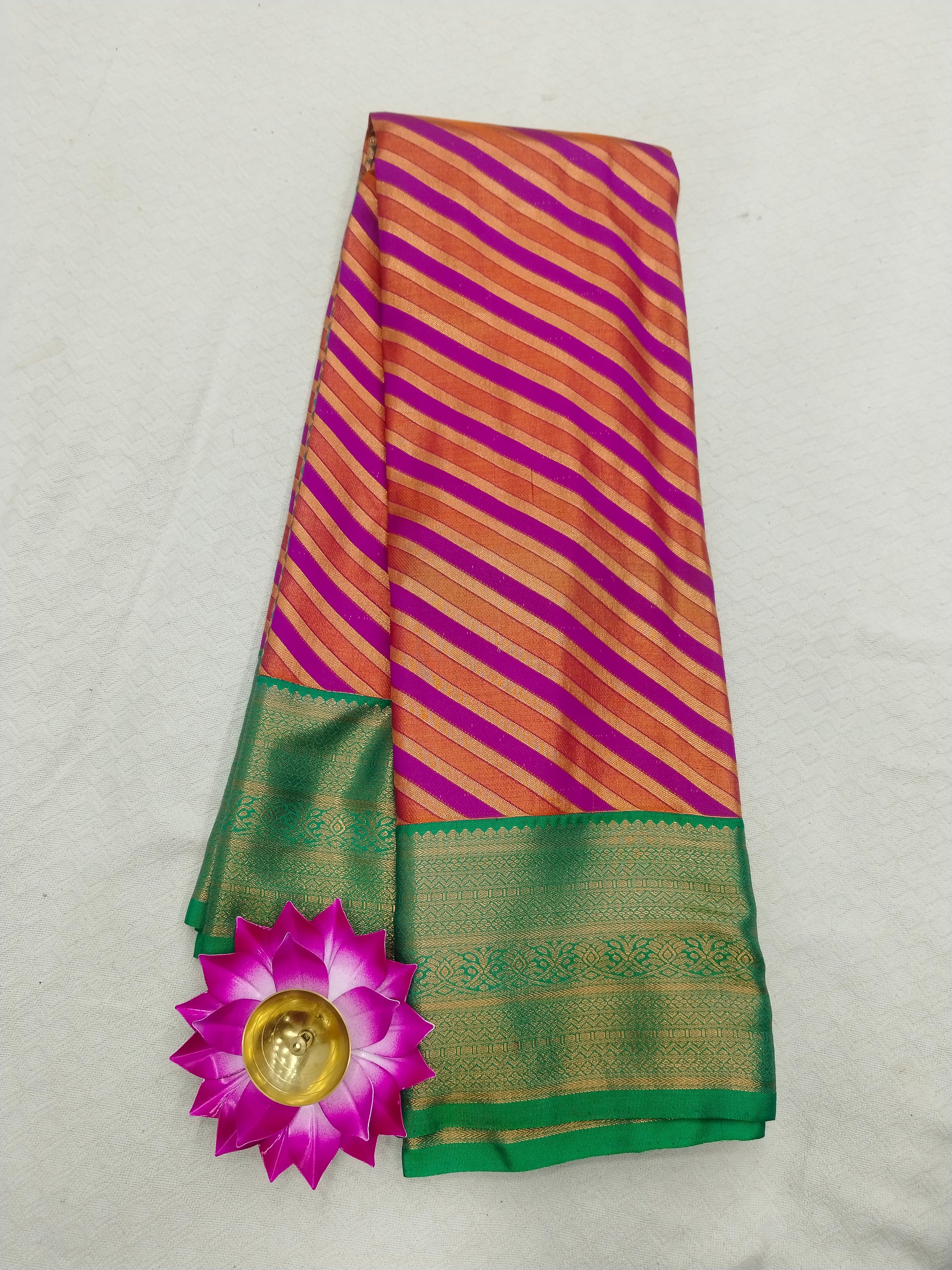 Semi Kancheepuram Saree with Brocade Blouse - Festive Strip Pattern Elegance-veena silk