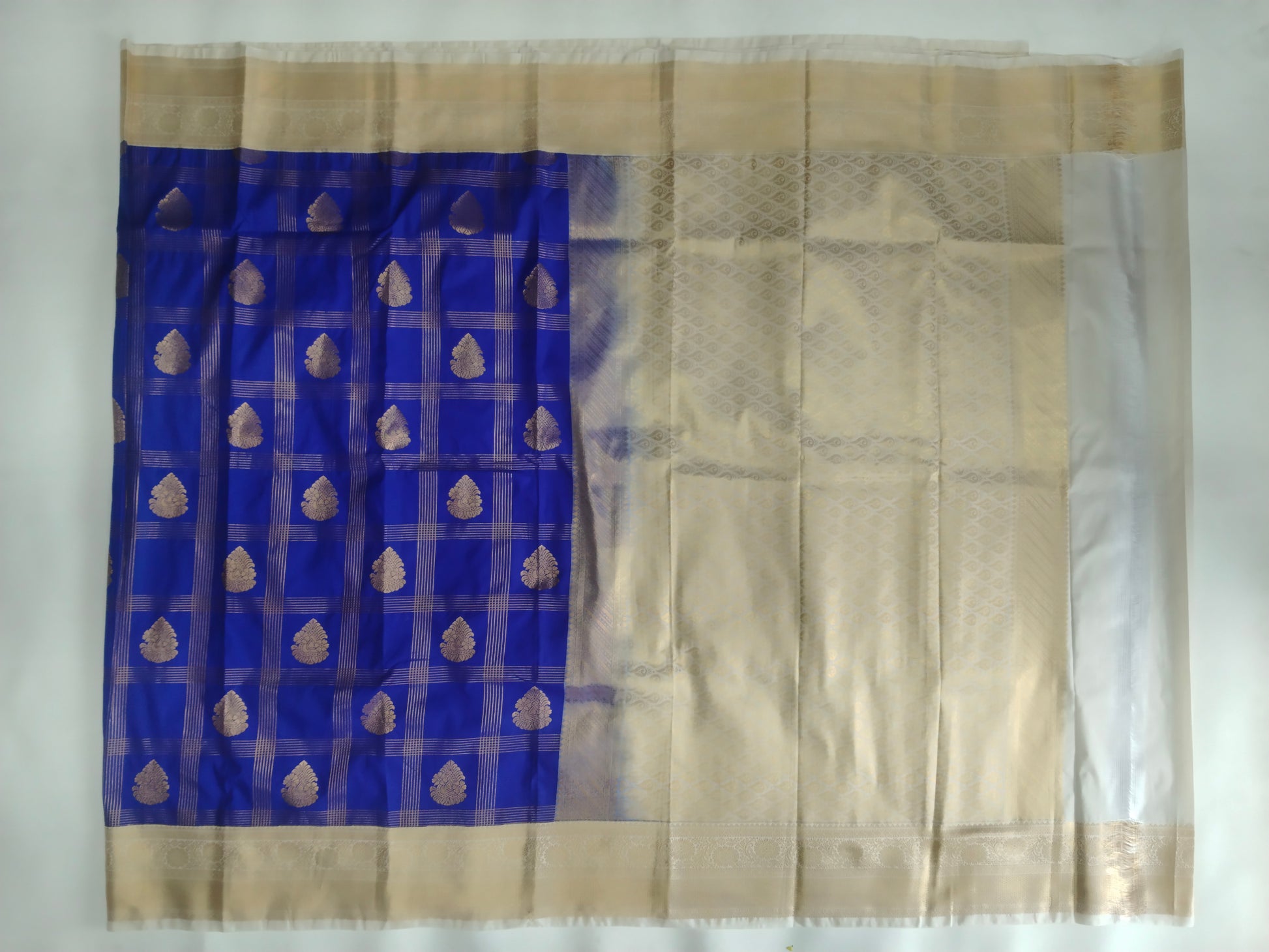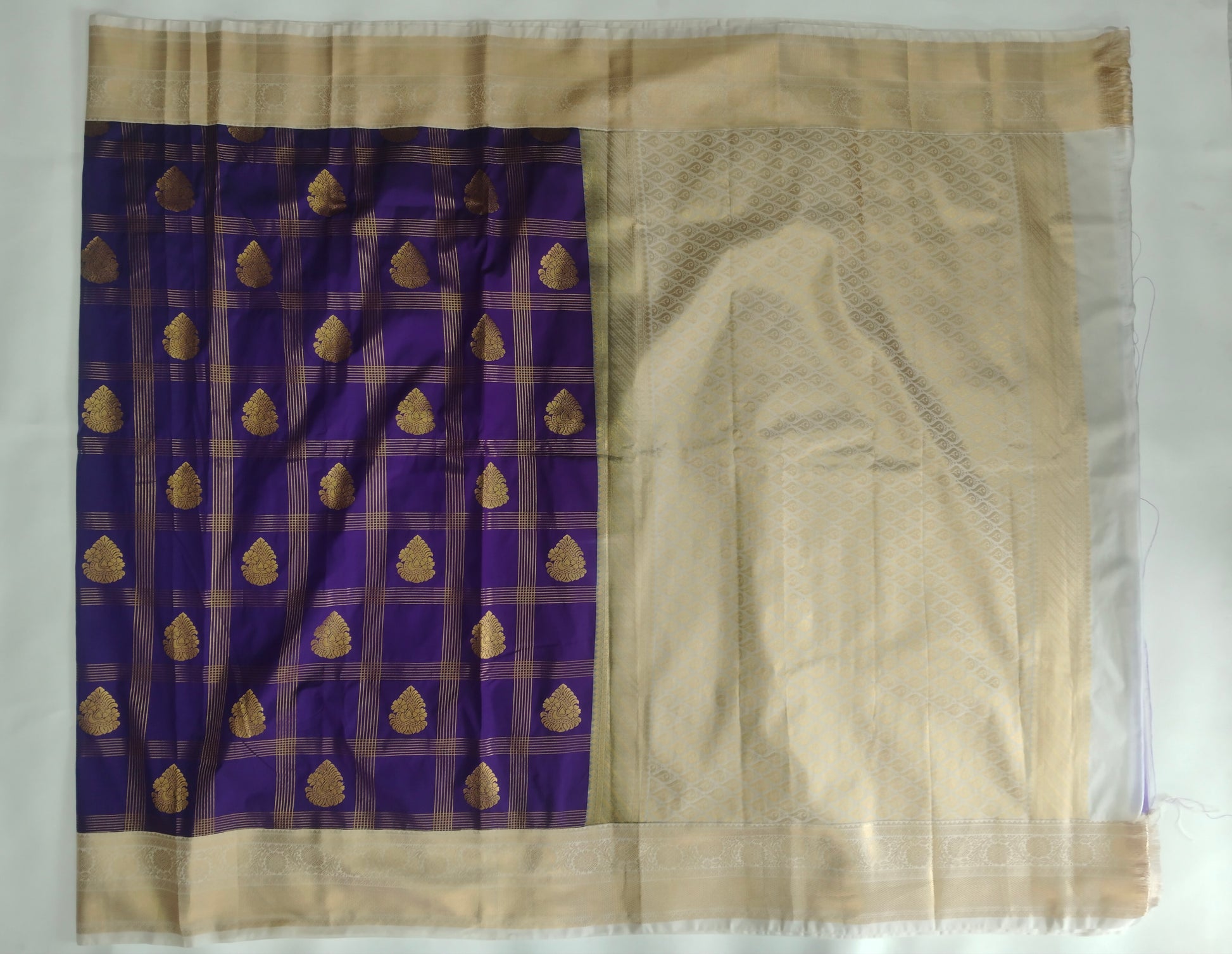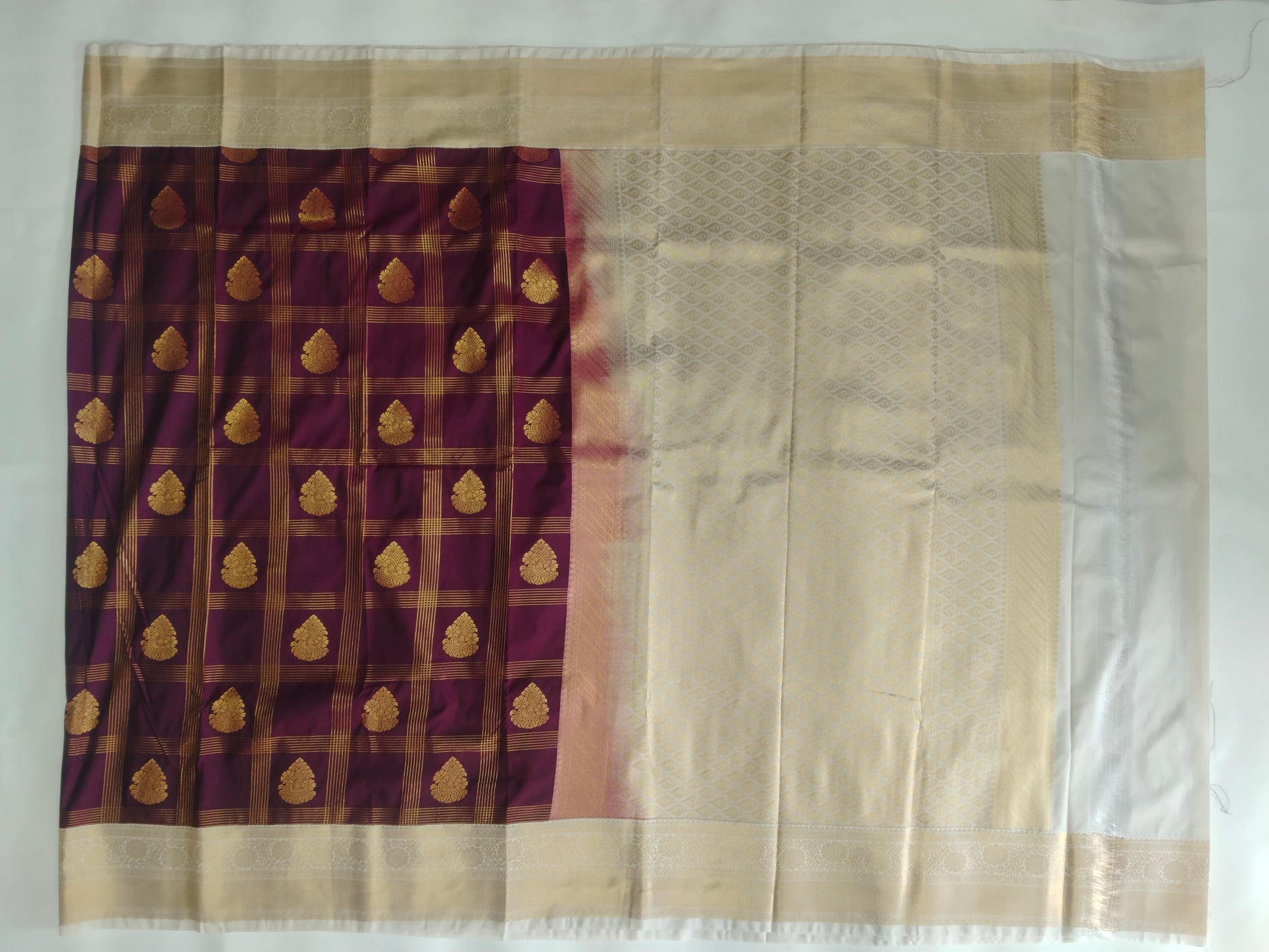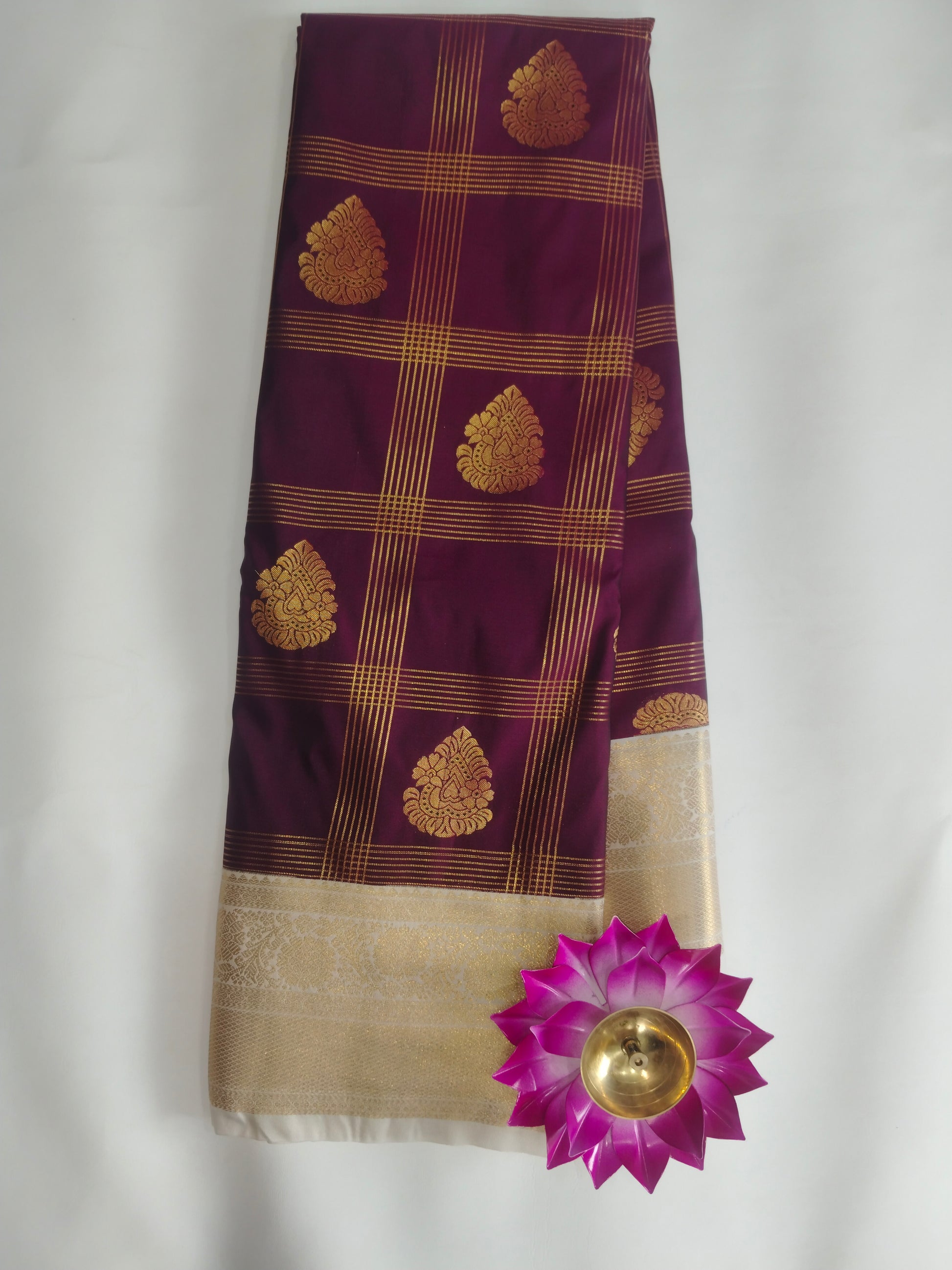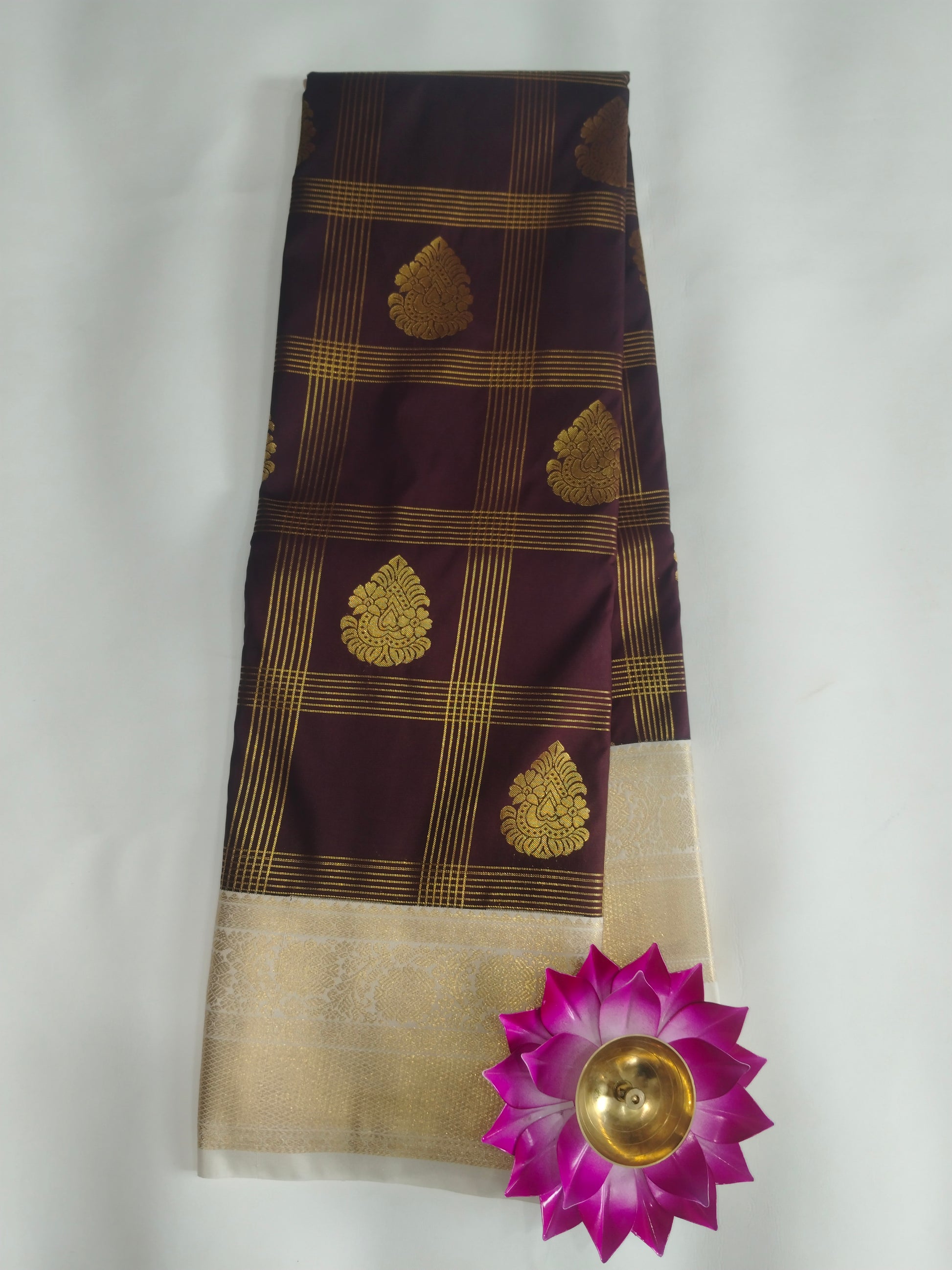 Semi Kanchipuram Silk Saree with Checks & Buta, Contrast Border and Blouse Piece-veena silk