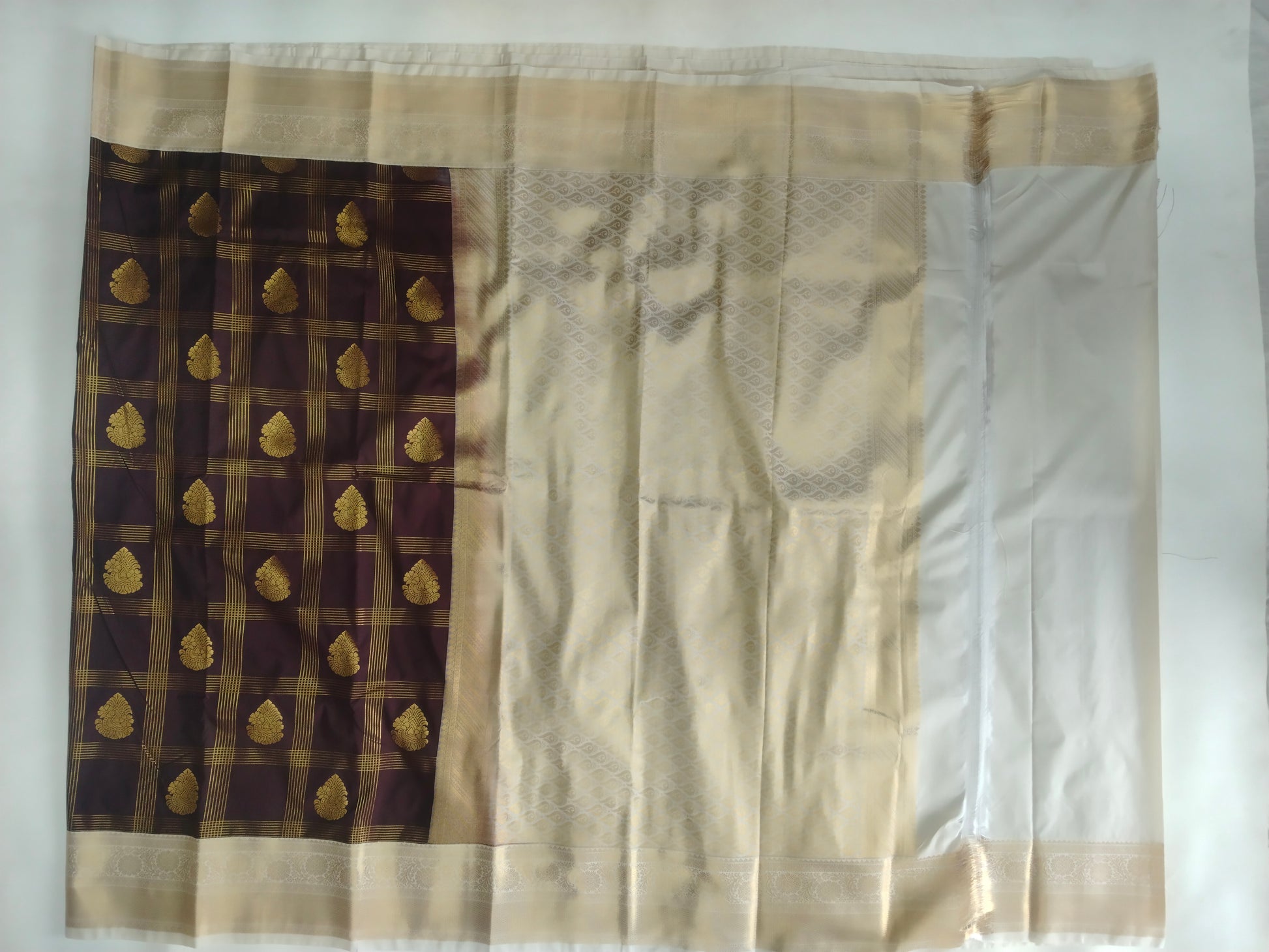 Experience traditional elegance with this timeless Semi Kanchipuram Silk Saree, crafted with a graceful drape and adorned with a rich gold zari contrast border. Perfect for festive occasions and family celebrations, this saree offers both comfort and classic appeal.