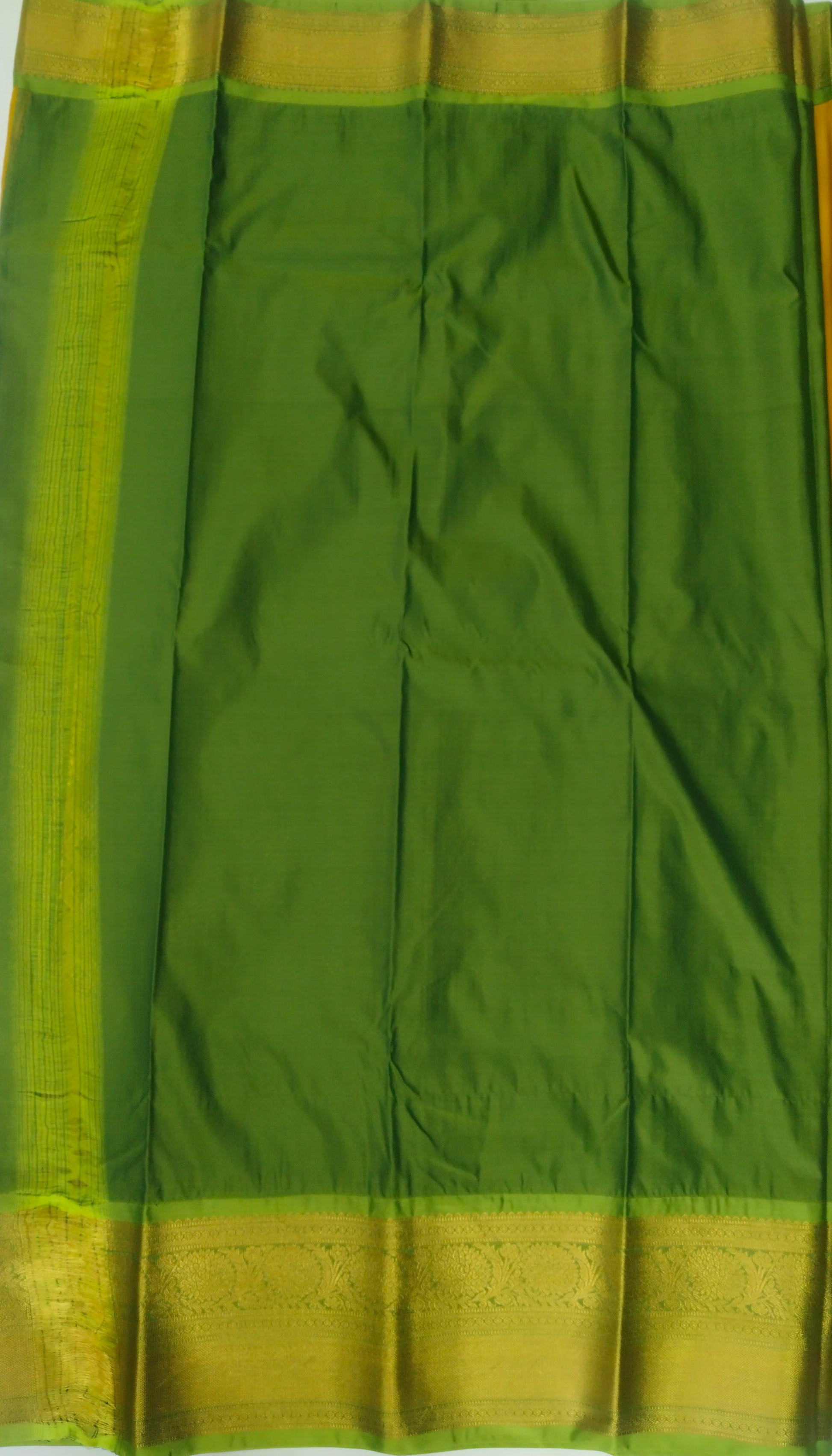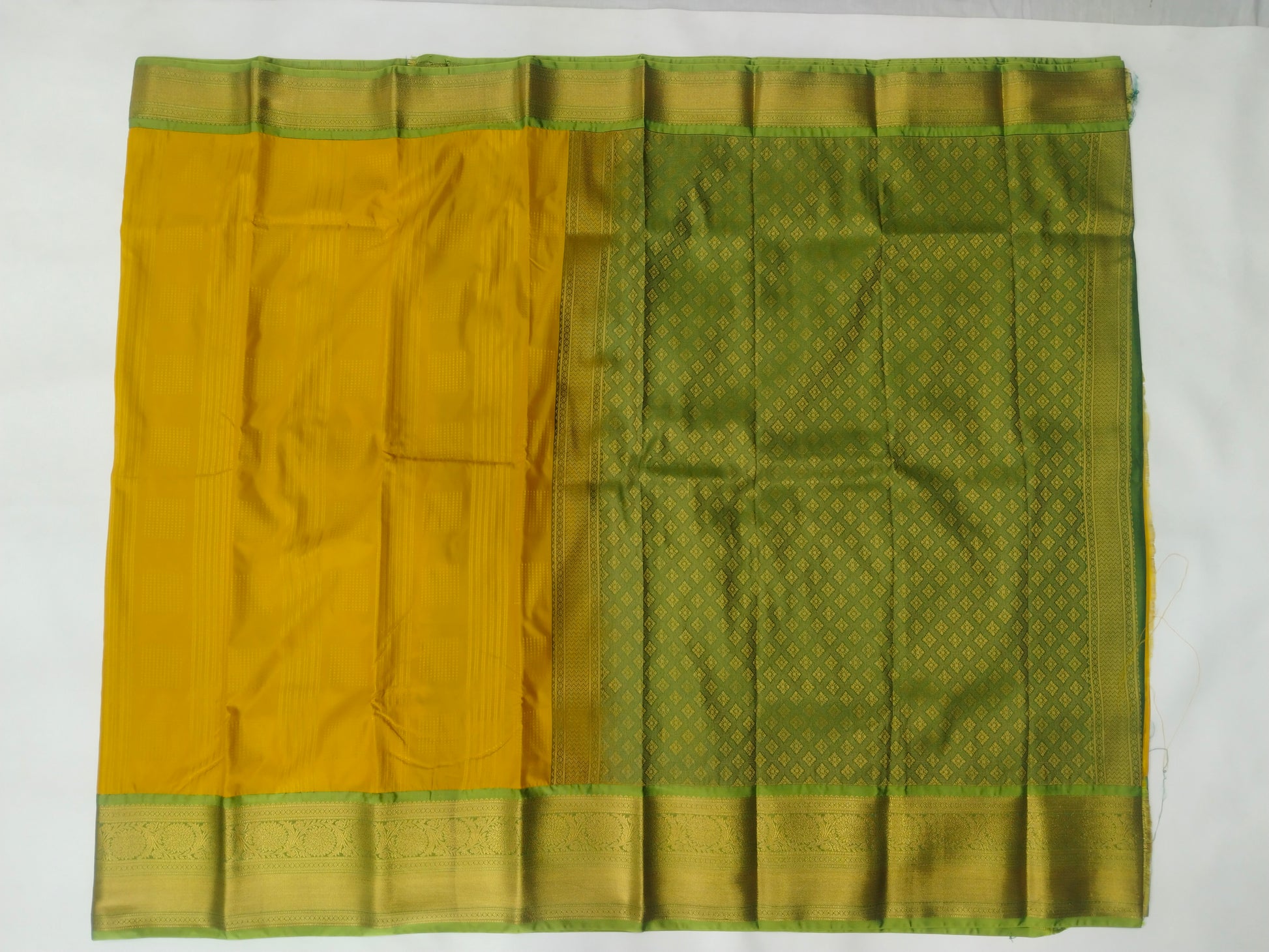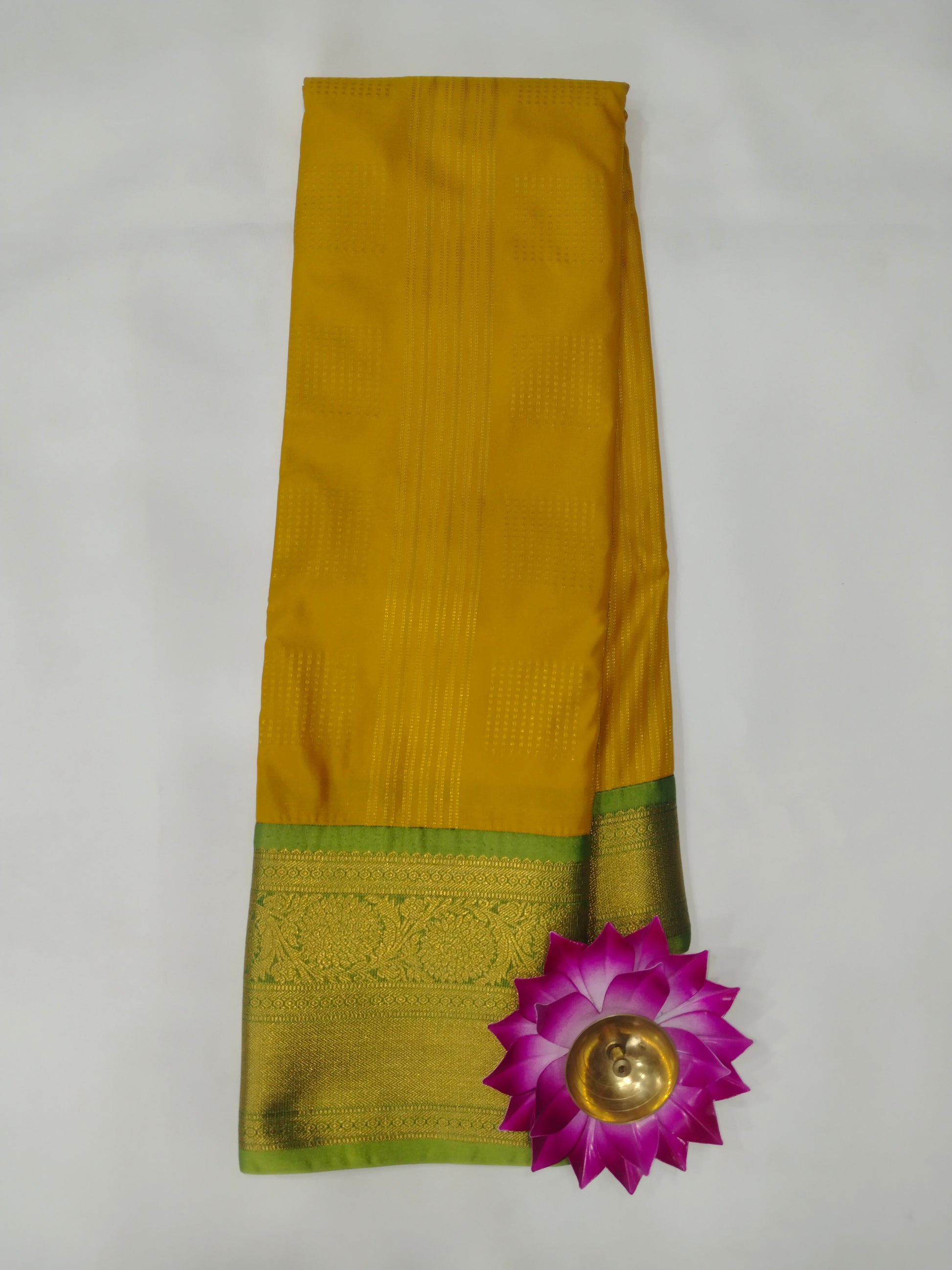 🟨 Semi Kanchipuram Silk Saree with Square Buta & Contrast Border 🟨