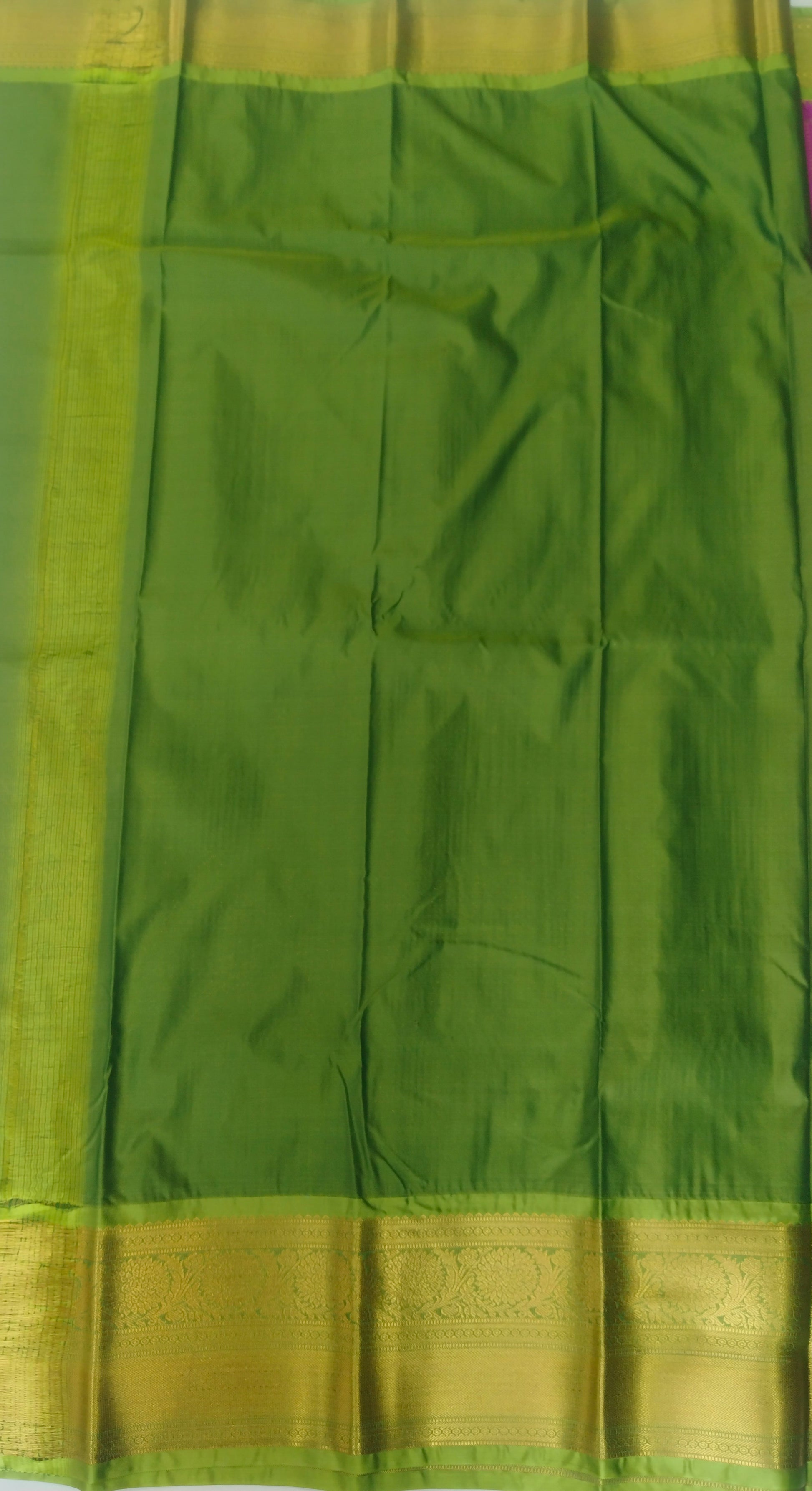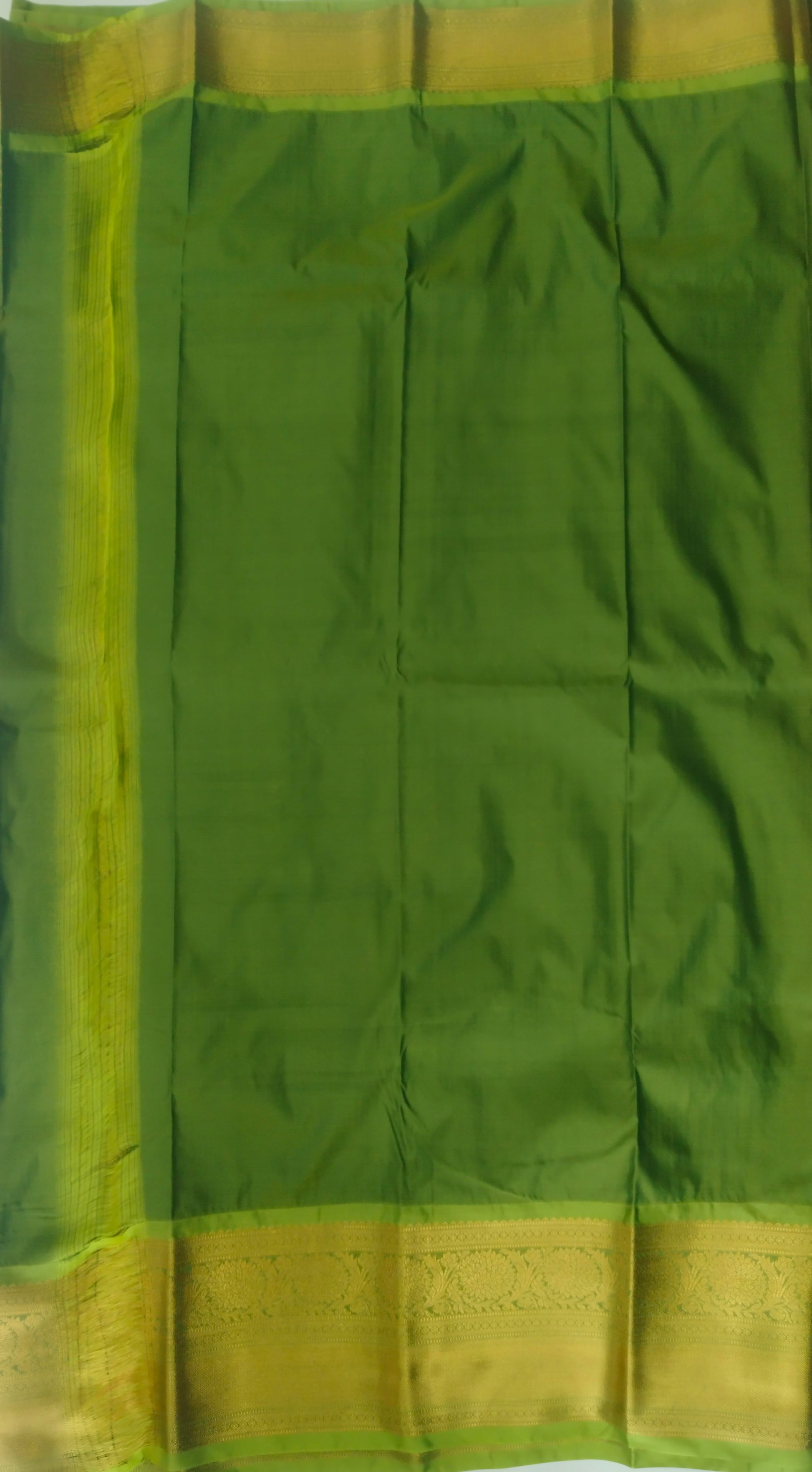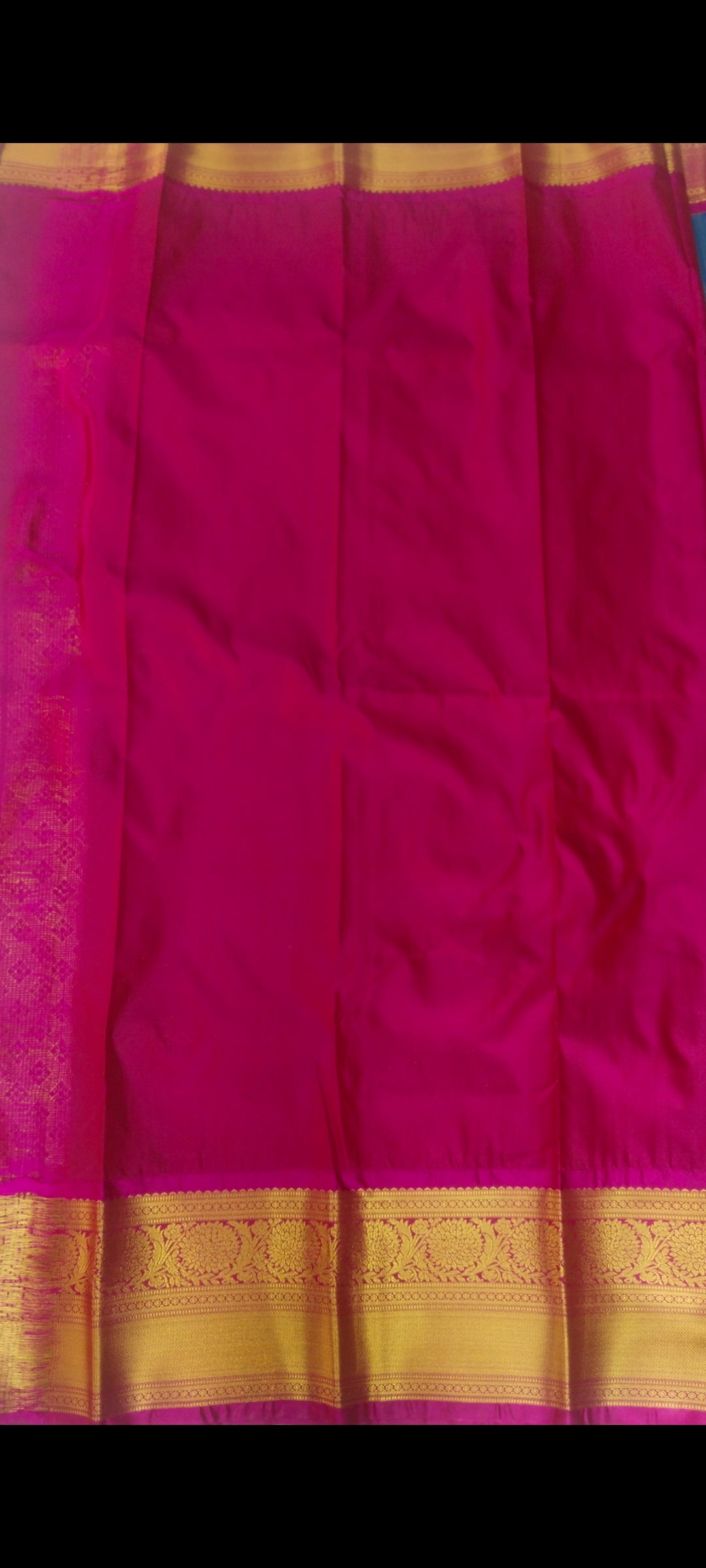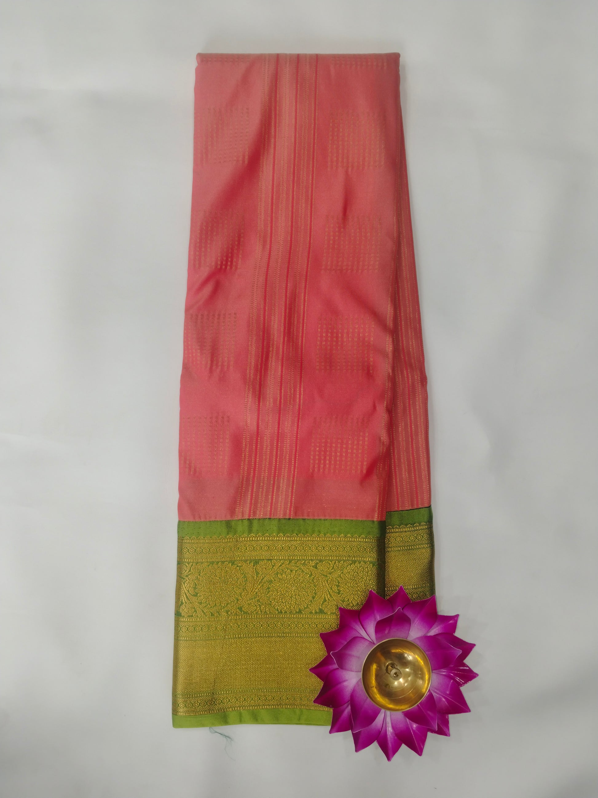 Drape yourself in tradition with this elegant Semi Kanchipuram Silk Saree, featuring square buta motifs with line detailing, a rich contrast blouse, and a gold zari border with grand pallu — perfect for festive occasions.